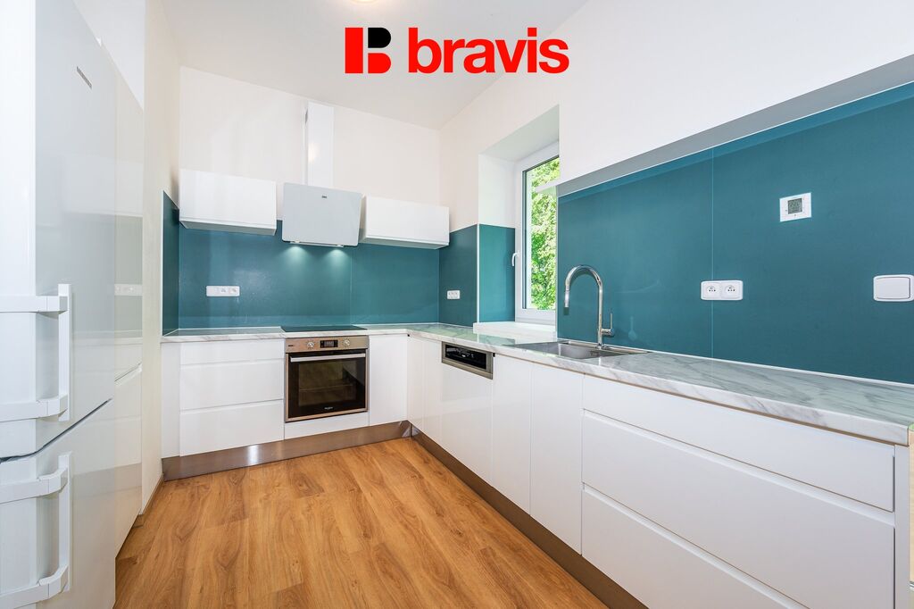Byt se nachází ve 1.NP cihlového domu. Moderní kuchyně, která byla osazena v roce 2020 je zařízena kuchyňskou linkou s indukční deskou, elektrickou vestavěnou troubou, lednicí s mrazákem a myčkou.