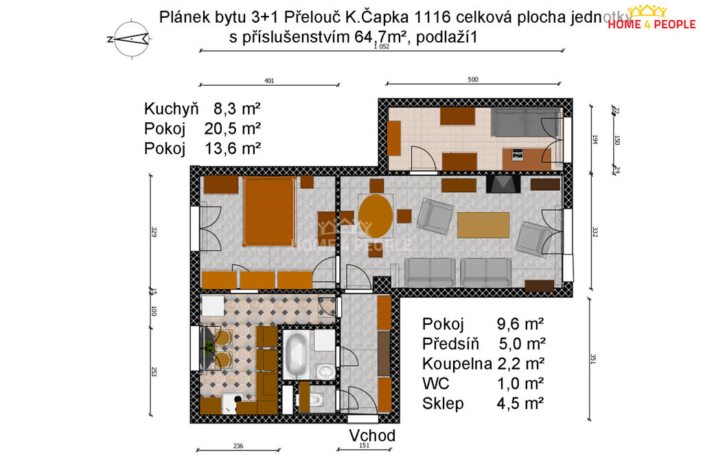 ke koupi byt 3+1 (64,7m²), umístěný v 1.NP cihlového domu o čtyřech NP. Dům prošel v roce 2020 celkovou rekonstrukci, včetně zateplení pláště budovy, zateplení střechy, nová plastová okna, nové vchodové dveře včetně schránek. Dále došlo k výměně vodovodního a odpadního potrubí a elektroinstalace ve společných prostorách domu. Příjemné je oplocení pozemku domu, s výsadbou stromů a zeleně, které lze využívat společně s ostatními obyvateli domu. Do bytu je zaveden plyn, ohřev teplé vody zajišťuje plynová karma v byte, sporák v kuchyni je též plynový. Vytápění je centrální plynovou kotelnou, umístěnou v suterénu domu. Dům je bez výtahu a byt ve zvýšeném 1.NP je výhodný pro snadný přístup. Okna jsou v dostatečné výšce, aby do bytu z ulice nebylo vidět. Byt je v původním udržovaném stavu a nabízí tedy skvělou příležitost pro modernizaci, dle vlastních představ. Zařízení současným nábytkem bude včas vystěhováno. K bytu náleží zděný sklep 4,5 m² s menším oknem. Křemenské Předměstí Přelouče, působí velmi moderně a příjemně. V blízkosti je zastávka MHD, školy, školky, dětská hřiště a obchody. Město poskytuje veškerou občanskou vybavenost, dobrou dopravní dostupnost díky napojení na silnici I/2 a blízkost k dálnici D35, což zajišťuje snadné spojení s okolními městy Pardubice 18 km, Hradec Králové 35 km, Praha 104 km. Veškerá doprava je zajištěna vlaky na místní stanici a řadou autobusových linek. Náš specializovaný tým vám zajistí dle vašich možností a požadavků financování k pořízení tohoto bytu. V případě vašeho zájmu o prohlídku mě kontaktujte kdykoli. Ev. číslo: 31980.