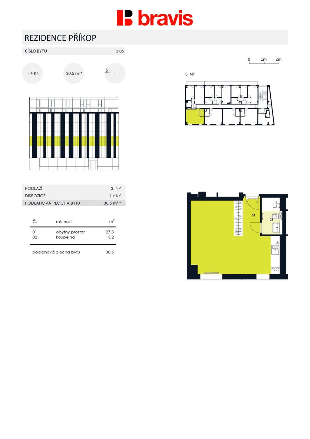Inzerovaný byt 1kk o celkové ploše 30 m2 se nachází ve 3.NP, přesné umístění uvidíte na fotografiích.