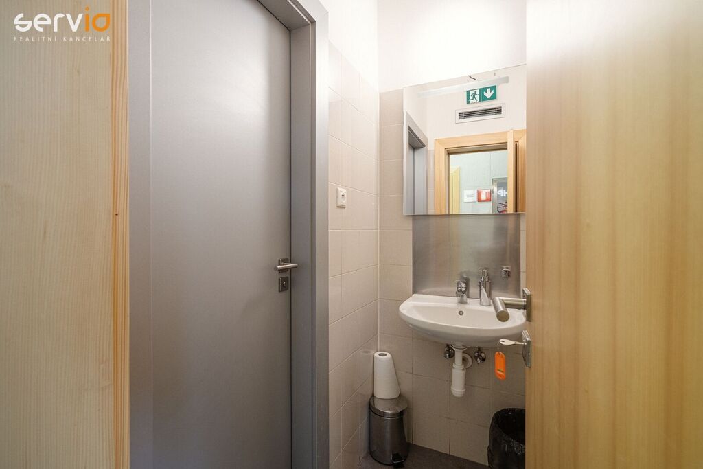 Vybavení: Sociální zařízení pro zaměstnance a pro klienty, přípojka internetu, kabelové rozvody. Jinak nezařízeno. Převážná většina zařízení uvedeného na fotografiích již není k dispozici.