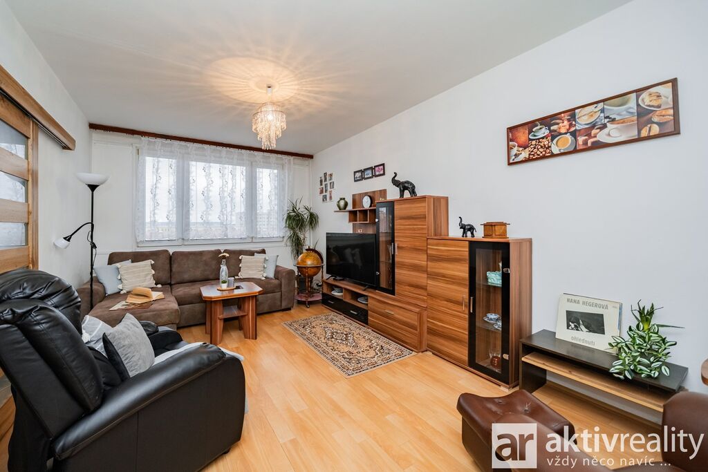 Nabízíme světlý byt dispozičně 3+1 v družstevním vlastnictví v 6. patře zatepleného panelového domu s celkovou užitnou plochou 76 m2 s lodžií a k bytu náleží sklep. Disponuje 3 samostatnými pokoji, kuchyní, komorou, koupelnou a odděleným WC.