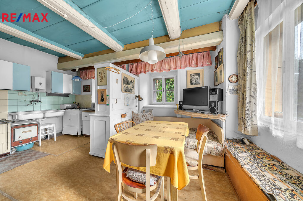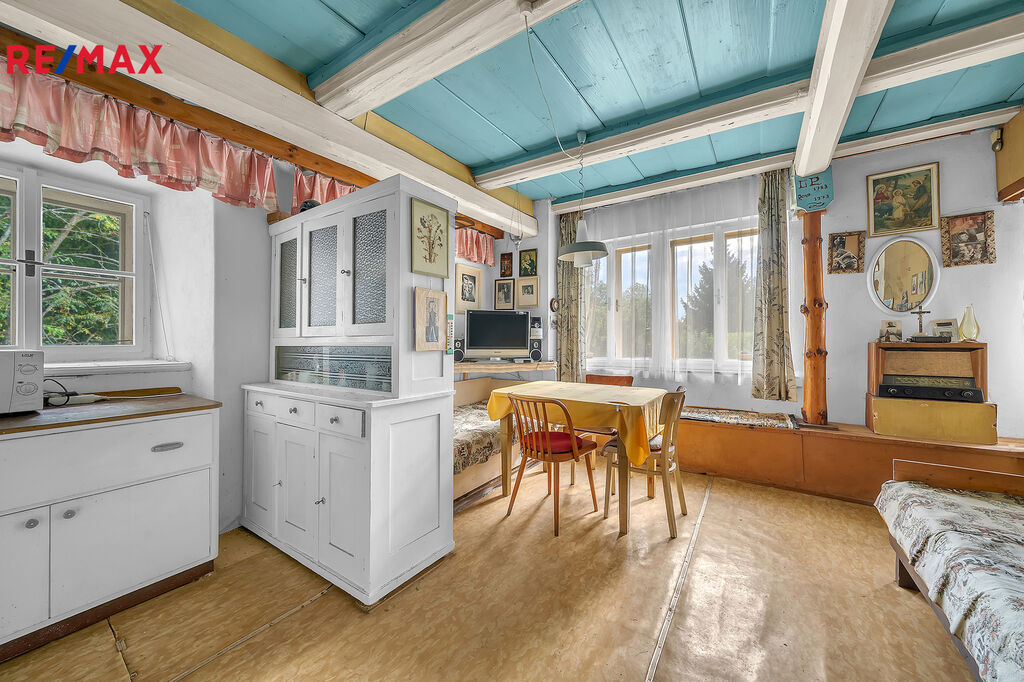 V podkroví se nachází velká velmi světlá obytná místnost a další 3 menší pokojíčky. Chalupa je podsklepená.