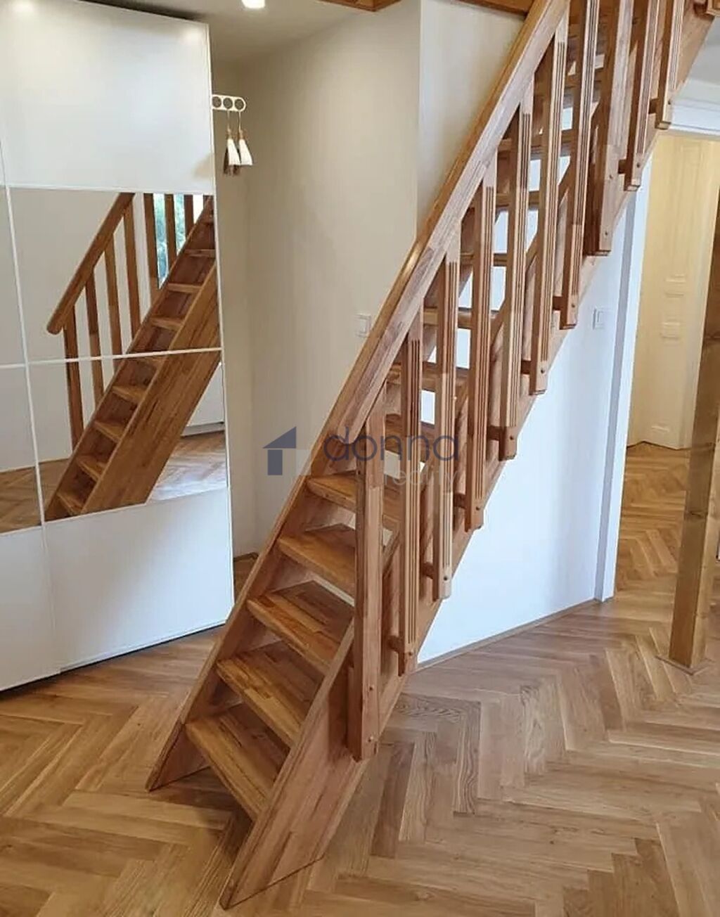 Byt je po rekonstrukci, zařízený nábytkem a spotřebiči, patro na spaní/úložný prostor.