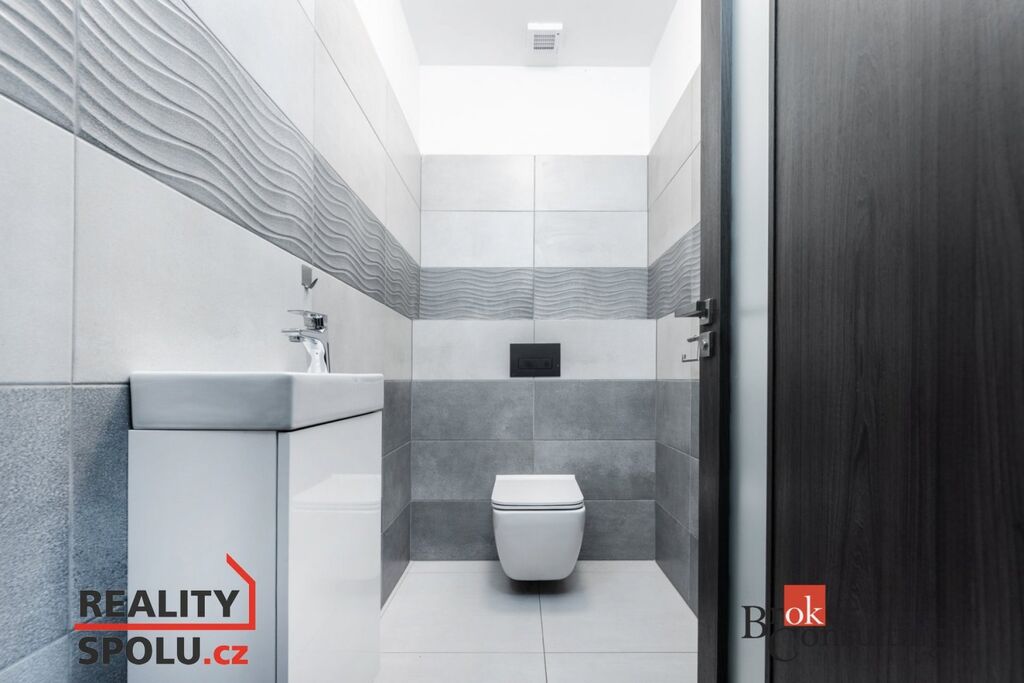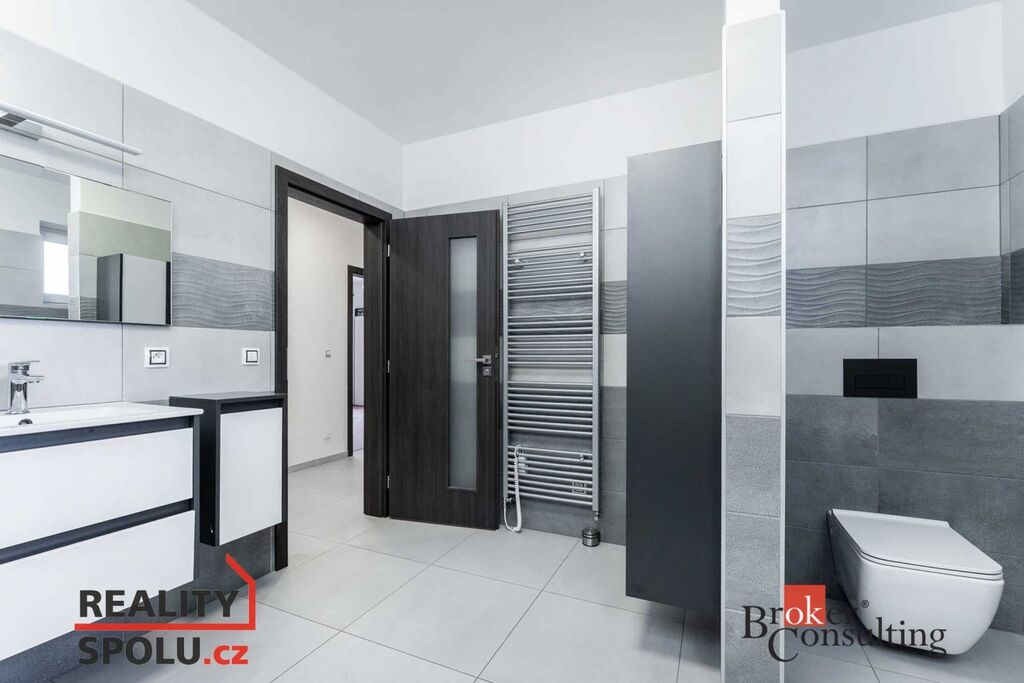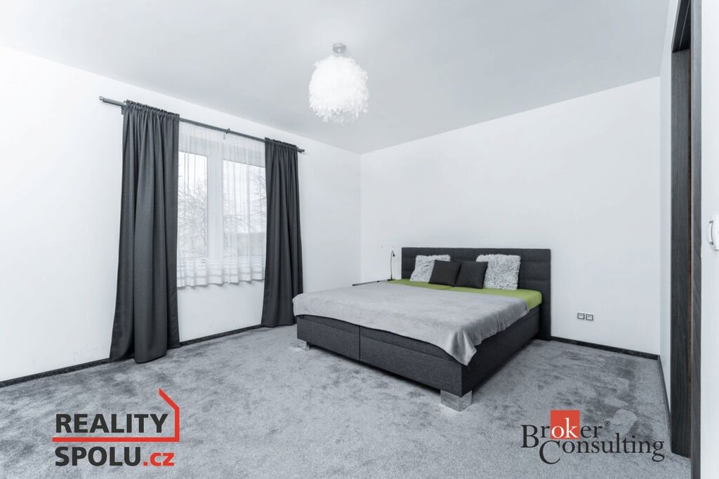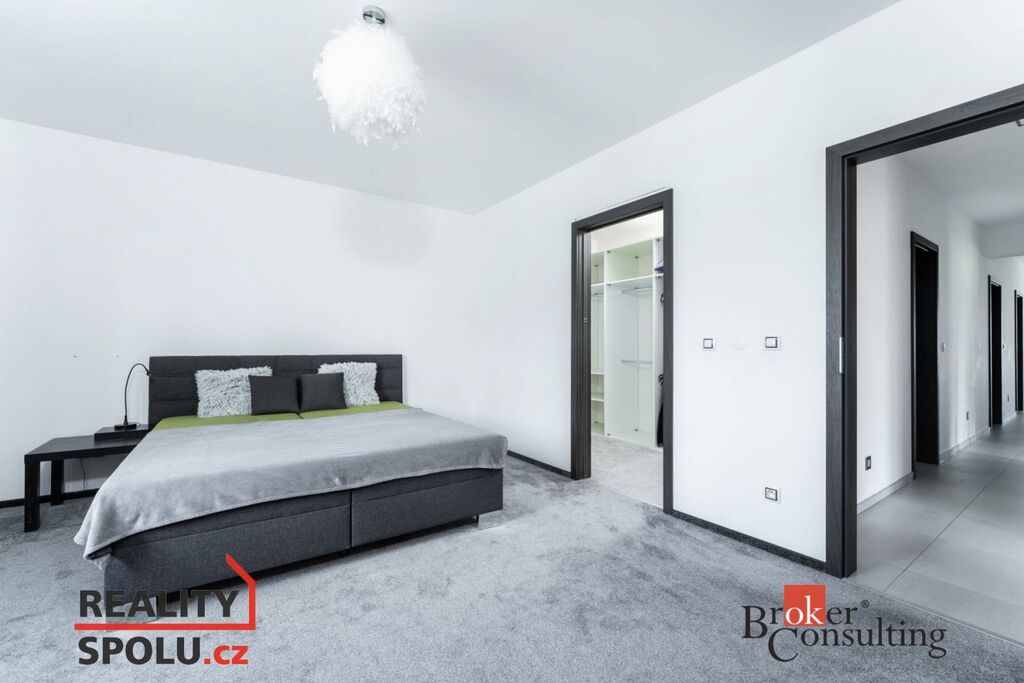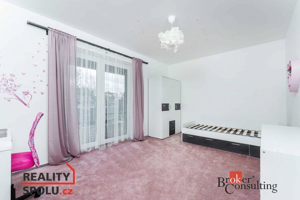 Noční část domu tvoří dvě dětské ložnice (jedna s vlastní šatnou a vstupem na druhou terasu), pracovna a hlavní ložnice se šatnou a zabudovaným bezpečnostním trezorem. K dispozici je moderní koupelna s toaletou, samostatné WC a technická místnost se vstupem do garáže.