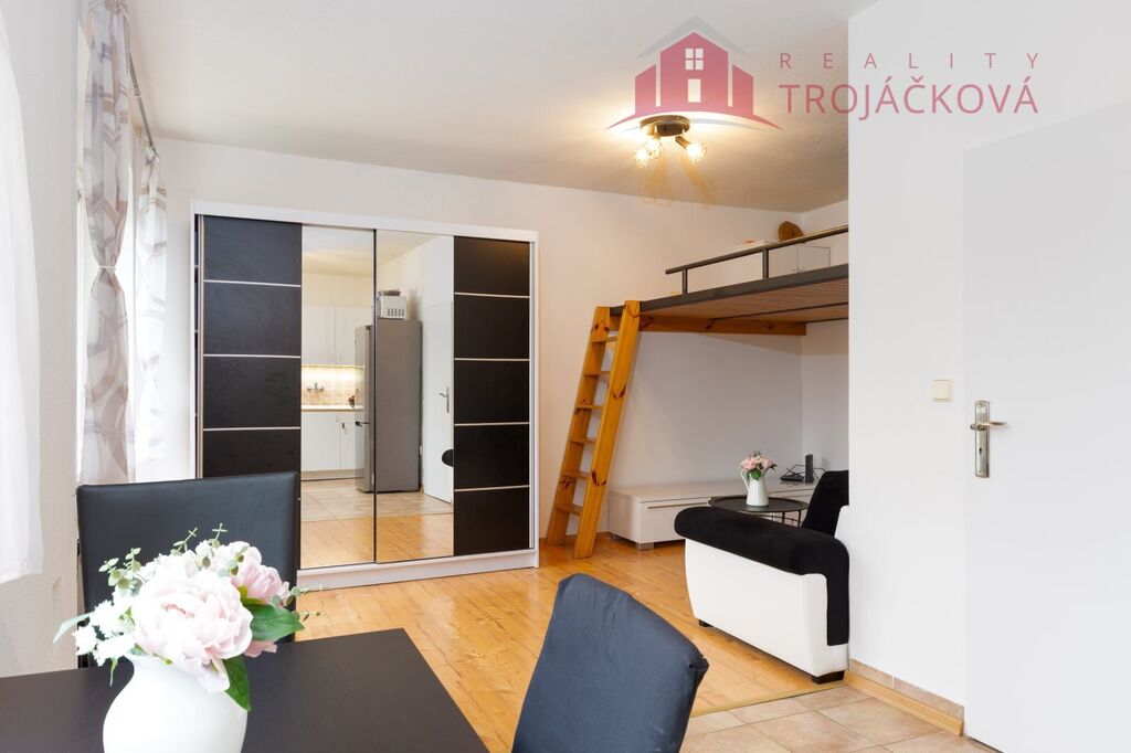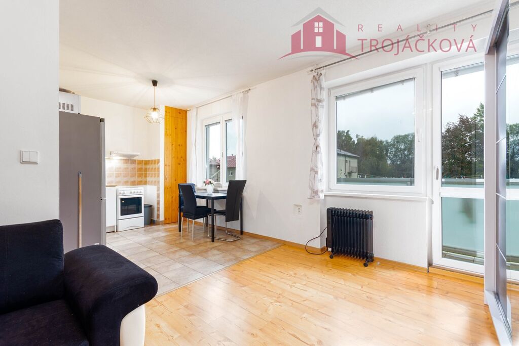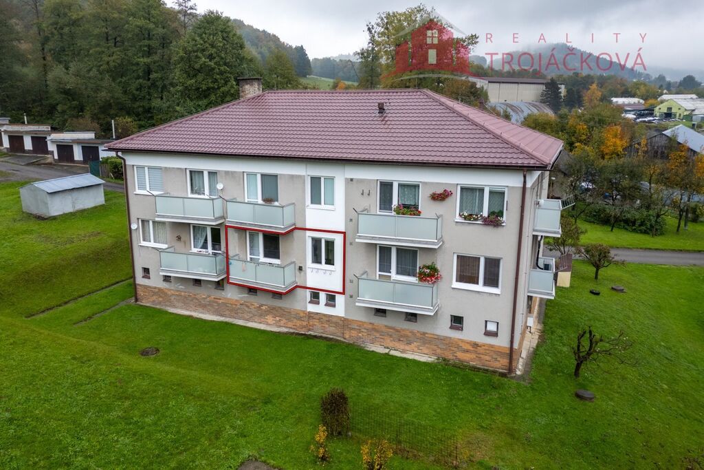 Nabízíme k prodeji útulný byt o dispozici 1+kk v žádané lokalitě obce Vigantice. Byt je v osobním vlastnictví o výměře 36 m2 s balkónem a sklepem (5 m2). Byt se nachází v 1. NP/ 2.NP cihlového domu, který prošel částečnou revitalizací ( nová střecha, plastová okna, nové balkóny). Bytová jednotka nabízí příjemné bydlení ideálně pro 1-2 osoby. Byt je nabízen včetně vybavení: nábytek v předsíni, v obývacím pokoji je vestavěné patro na spaní, rozkládací sedací souprava, stolek pod TV a skříň. Součástí kuchyňského koutu je kuchyňská linka s lednicí a mrazákem, elektrický sporák, digestoř a kuchyňský stůl se židlemi. Byt je vytápěn elek. radiátorem a ohřev vody je elek.bojlerem. Koupelna disponuje sprchovým koutem, pračkou, umyvadlem a WC je samostatné. Byt prošel částečnou rekonstrukcí cca před 7 lety, kdy proběhla rekonstrukce a modernizace koupelny ( nové keramické obklady, nový sprchový kout a umyvadlo, nový elek.bojler) a nové omítky v celém bytě. Před rokem došlo také k výměně nové kuch.linky. Rozvody elek. a vody jsou původní. Jinak je byt v pěkném udržovaném stavu. V pokoji je dřevěná podlaha , na chodbě a v koupelně je dlažba. Byt je světlý s orientací na západní stranu a má nízké náklady na bydlení ve výši 2.287,- Kč. Je vhodný, jak k bydlení, tak i jako investice k pronájmu. Parkování je před domem. Jedná se o dvoupodlažní bytový dům umístěný v klidné části obce obklopený zelení. Obec je vzdálená 4 km od Rožnova pod Radhoštěm.