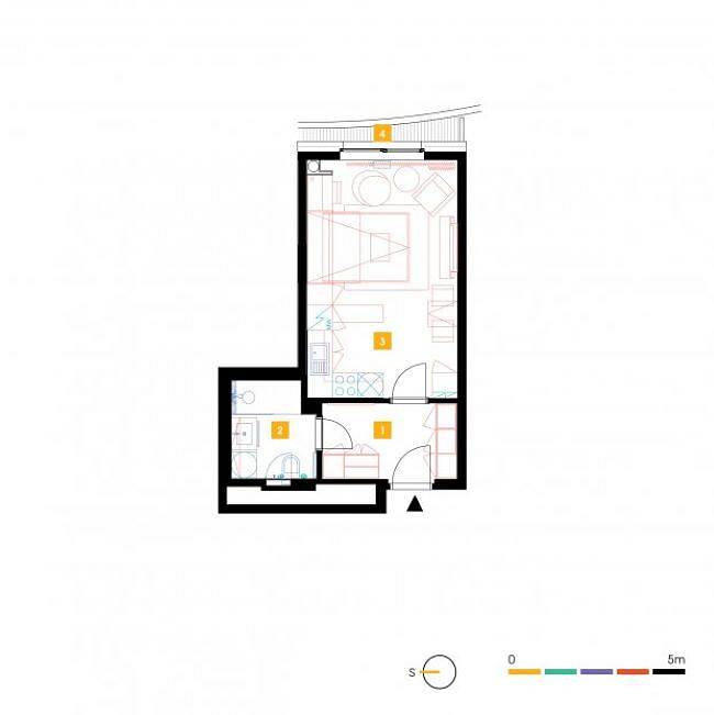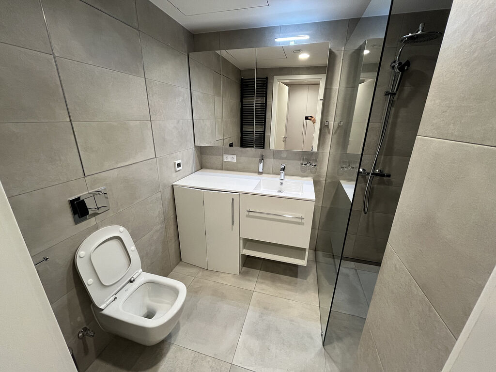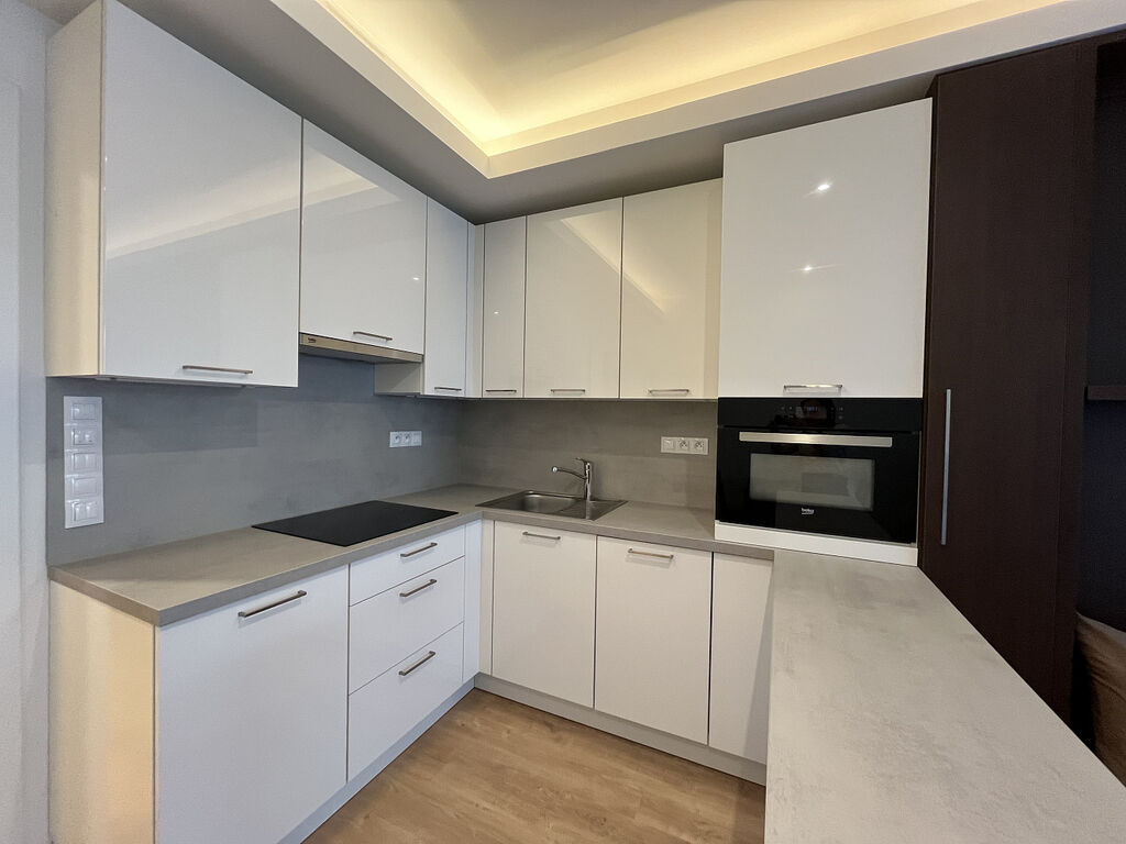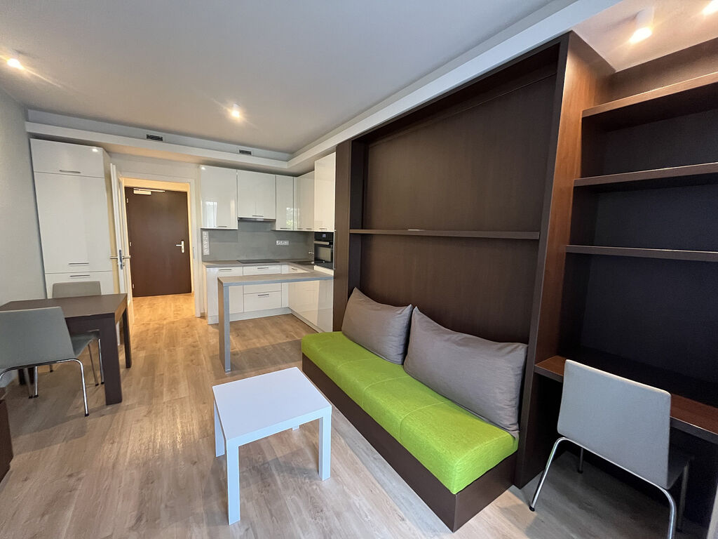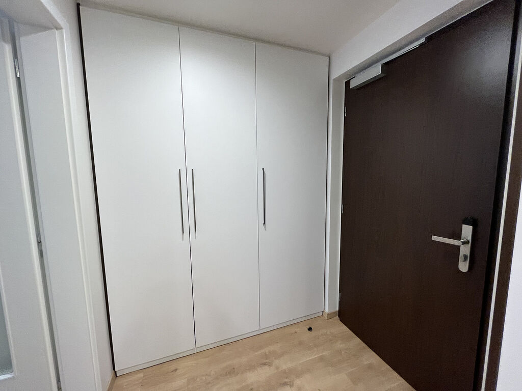 Velice pěkné 1+kk (307) v 3.NP s terasou přímo na metru B. Byt je kompletně zařízený a naleznete v něm veškerý nábytek a vybavení, a to i včetně nádobí či přikrývek! Moderní obývací sofa s integrovanou sklápěcí manželskou postelí Vám celý byt opticky výrazně zvětší. V koupelně vás jistě potěší příjemné podlahové vytápění a vana.