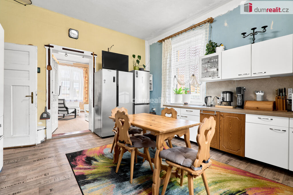Nabízíme k prodeji podsklepený dům se 3 byty v centru Kadaně. V přízemí je byt 2+1 v původním stavu. Tento prostor je vhodný i pro podnikatelské účely. v 1. patře je byt 2+1 po celkové rekonstrukci a 2. patro je připraveno na vybudování bytu 3+KK. V celém domě je nová elektroinstalace, rozvody vody a odpadů byly vyměněny před cca 16 lety, střecha před 18 lety. Dále je dům vybaven rozvody WIFI a kabelové TV. Každý byt má samostatné jističe a elektroměr. Dům je vytápěn kotlem na tuhá paliva, ohřev vody zajišťuje el. bojler. Na zahradě je zděný zahradní domek a dřevěná pergola s udírnou. Vedle domu je parkovací místo pro 2 auta. Možnost financování hypotékou, kterou Vám rádi vyřídíme. Vzhledem k tomu, že před zadáním do inzerce nebyl vyhotoven PENB, je tato nemovitost v souladu s platným zákonem zařazena do energetické třídy G. Ev. číslo: 652829.