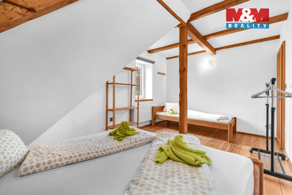 Nabízíme k prodeji jedinečný rodinný dům v centru obce Žacléř, který je aktuálně využíván jako penzion. V přízemí se nachází plně vybavená kuchyň propojená s obývacím pokojem, kde nechybí krbová kamna napojena na celý topný systém včetně ohřevu vody, dále ložnice a koupelna se sprchovým koutem a WC. V prvním patře najdete tři ložnice a koupelnu s vanou, sprchovým koutem, WC a bidetem. Podkroví je upraveno na pokoj se šesti lůžky. Sklep je využíván jako společenská místnost se saunou a sprchou. Na zahradě je k dispozici bazén, trampolína, sauna a pergola. Dům je ve velmi dobrém stavu. V okolí najdete široké možnosti pro volnočasové aktivity – od turistických tras a cyklostezek až po lyžařské areály Prkenný Důl a Bret. V obci se nachází veškerá občanská vybavenost. Přístup do obce v blízké budoucnosti zrychlí dálnice D11 s odhadovaným dokončením v roce 2028. Nemovitost je tedy ideální investice pro podnikání i rodinné bydlení. Pro domluvení prohlídky a další informace volejte makléře.