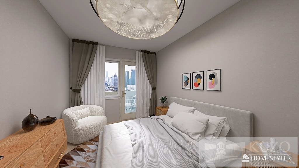 Byt tvoří prostorný obývací pokoj spojený s kuchyňským koutem, který je vybaven moderní kuchyňskou linkou ve tvaru „L“ s dostatkem úložného prostoru a spotřebiči včetně myčky, elektrické trouby, varné desky, digestoře a prostorné lednice. Na lodžii je přístup jak z obývací místnosti, tak z ložnice, odkud se nabízí příjemný výhled do zeleně. K bytu dále patří samostatná koupelna a toaleta, technická místnost vhodná pro skladový prostor. Součástí bytu je také sklepní kóje, která poskytuje další úložný prostor.