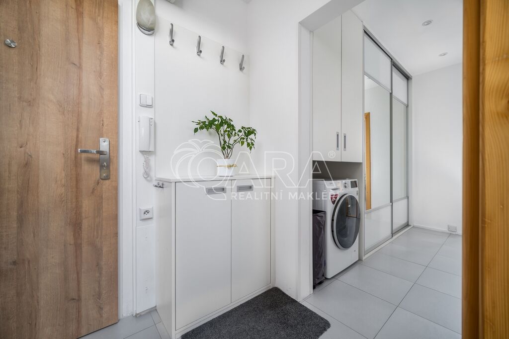 Úložný prostor je v bytě nadstandardní. Kromě vestavěné skříně na chodbě, budete mít k dispozici také komoru, kde je prostor například i pro sušičku. V suterénu domu se nachází ještě sklep o velikosti 3 m2.