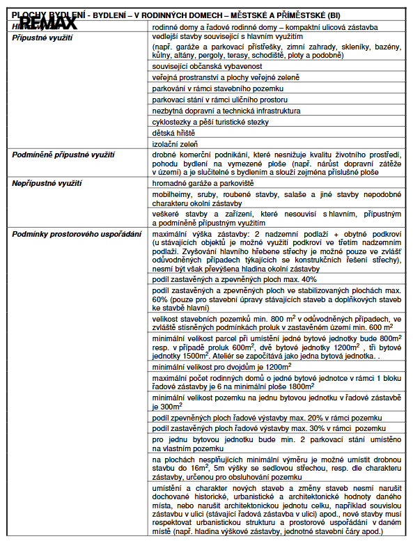 * podíl zastavěných a zpevněných ploch max. 40 %