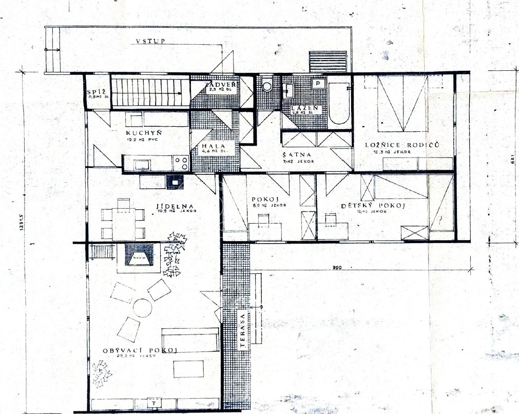 Na ideálním pozemku o celkové ploše 1000 m2 nabízíme kompletně podsklepený typizovaný rodinný dům - Domek MULTI 062. Jedná se o montovanou stavbu z prefabrikovaných izolovaných panelů s plochou střechou. Celá konstrukce je v dobrém technickém stavu. V nedávné době proběhla výměna oken za plastová s dvojskly.