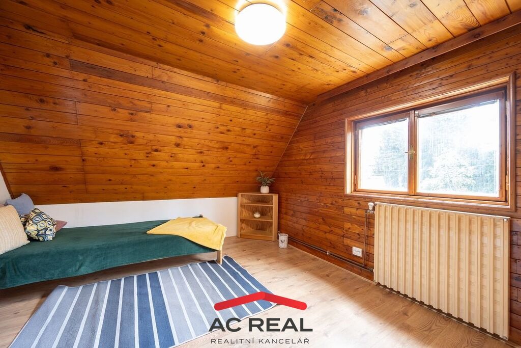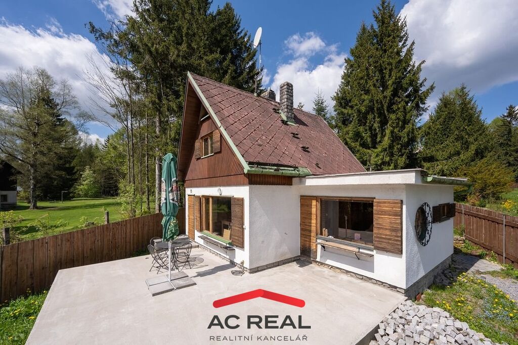 Útulná zděná chata v chráněné oblasti Žďárské vrchy je celoročně obyvatelná.