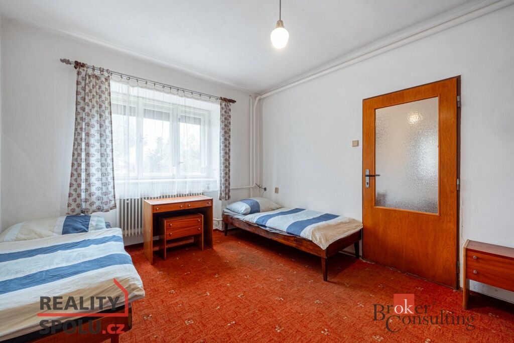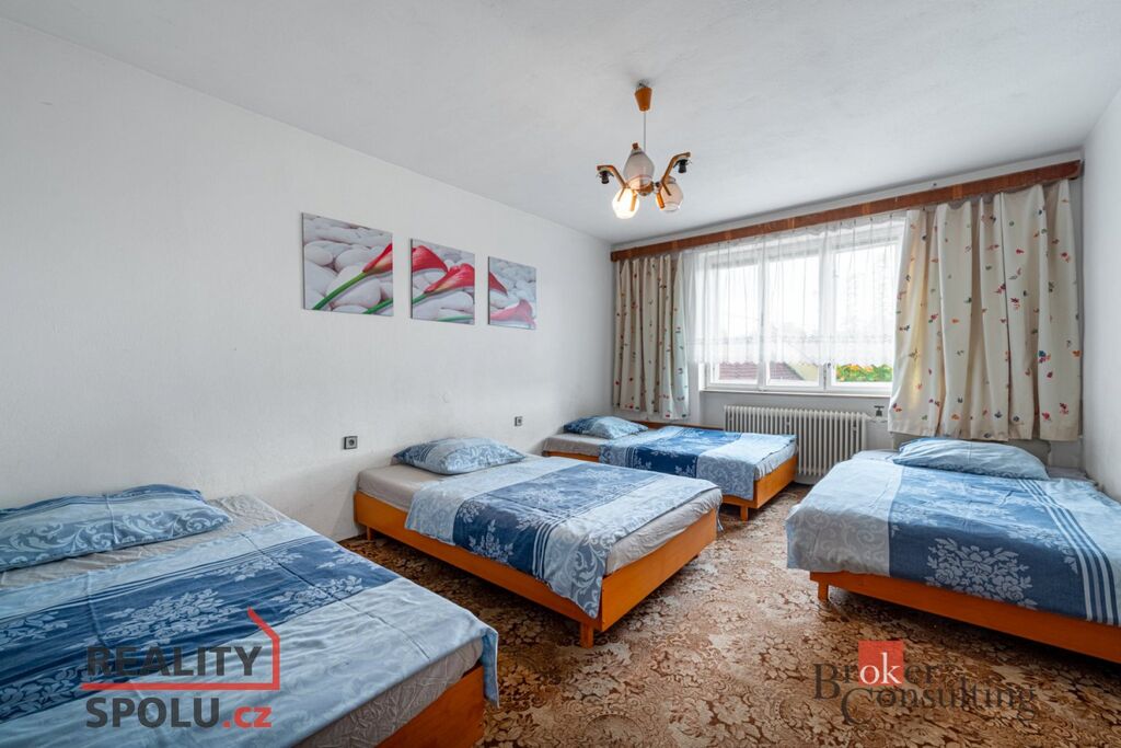 • V patře se nachází 4 pokoje, kuchyň, koupelna, WC a úklidová místnost.