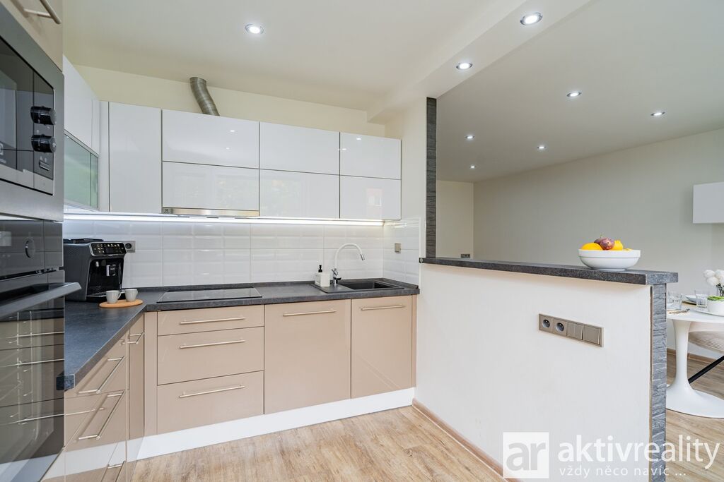 Prodej družstevního bytu 3+1 po kompletní rekonstrukci z roku 2021 ve 3. patře panelového domu po revitalizaci s výtahem v Mělníku. Podrobné informace najdete na webu viz video. Návrh interiéru vycházel z práce architekta, realizace proběhla profesionálně majitelem. Byt je čistý, funkční a připravený k okamžitému užívání bez dalších investic. Obývací pokoj je propojený s kuchyní a oddělený nízkým barovým pultem. Kuchyně do L nabízí dlouhou pracovní plochu, dostatek skříněk a moderní vestavné spotřebiče, navazuje jídelní část a plnohodnotný obývák. Ložnice má přímý vstup do šatny, druhý pokoj slouží jako dětský/pracovna. Předsíň zůstala prostorná a díky vestavným skříním přidává úložné místo. Koupelna je „tak akorát“ na velký sprchový kout, dvojumyvadlo, místo pro pračku i sušičku. Toaleta je samostatná s bidetovou sprškou a malým umyvadlem. Rekonstrukce zahrnovala nové příčky, kompletní elektro a rozvody, srovnání obvodových stěn sádrokartonem (lepší vzhled i akustika), lepený vinyl v obytných místnostech a odhlučnění stěny za kuchyní. Převládají posuvné dveře do pouzder, vstupní dveře jsou bezpečnostní a protipožární. Orientace: obývák s kuchyní jihozápad, ložnice a druhý pokoj severovýchod. K bytu náleží komora naproti dveřím bytu na patře a sklepní kóje. Parkování u domu a na větší ploše naproti přes Bezručovu. V pěší vzdálenosti Kaufland, Tesco, centrum, MHD/linkové autobusy, školy, školky a sportoviště. Podrobné informace najdete na webu viz video.