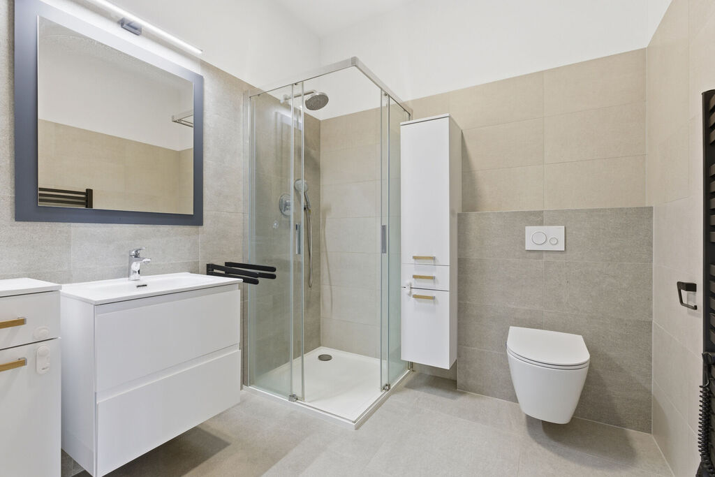 Dům byl kompletně zrekonstruován a druhé patro (kde se byt nachází) zcela nově vystavěno v roce 2020. V celém domě je pouze 6 bytových jednotek, 3 garsonky v přízemí, 2 byty v prvním patře a jediný největší byt ve druhém poschodí. V bytě je podlahové topení (centrální teplovodní), rekuperační jednotka (Zehnder), okna trojskla, osvětlení LED, podlahy dlažba a laminátové plovoucí. Stropy i podlahy jsou odizolované, zateplené.