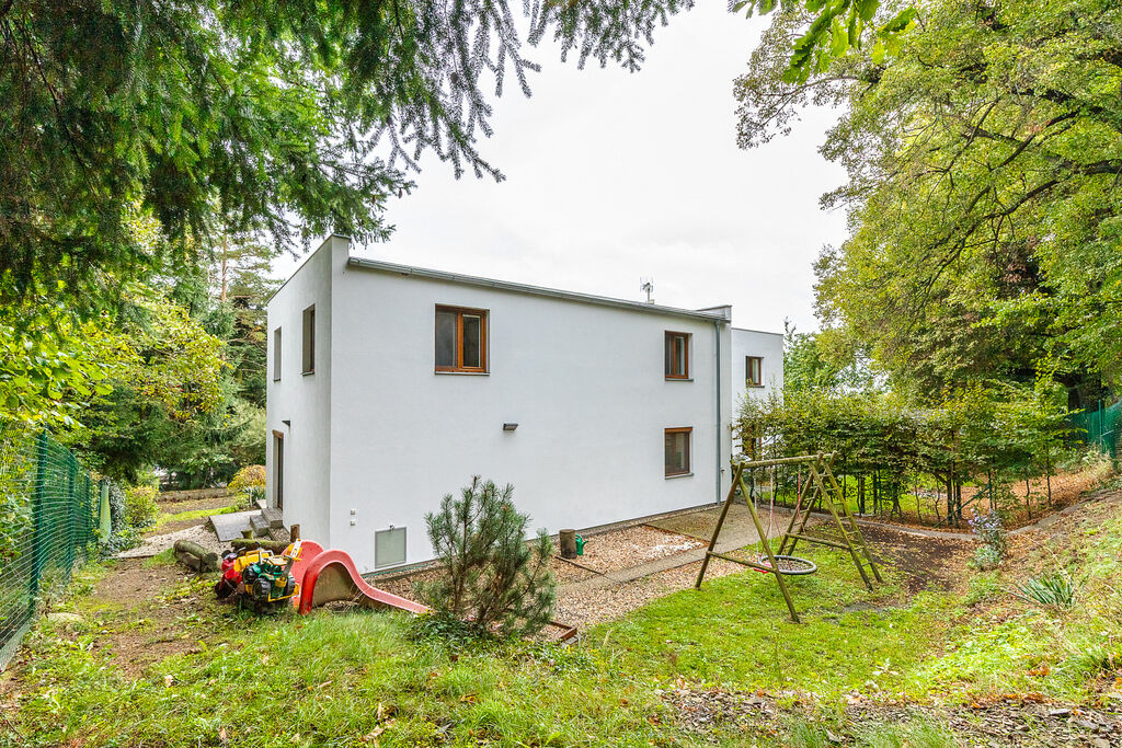 Ve výhradním zastoupení majitele nabízíme k prodeji moderní rodinný dům s vlastní zahradou, situovaný v klidné části Říčan – na dosah přírody i města. Dům s dispozicí 5+kk a celkovou užitnou plochou 154 m² je dvoupodlažní, nepodsklepený a postavený z kvalitních broušených cihel Porotherm. Při stavbě byl kladen důraz na kvalitu použitých materiálů a provedených prací jak v exteriéru, tak interiéru