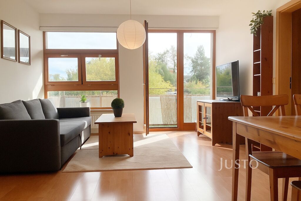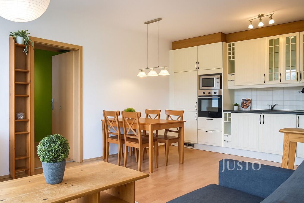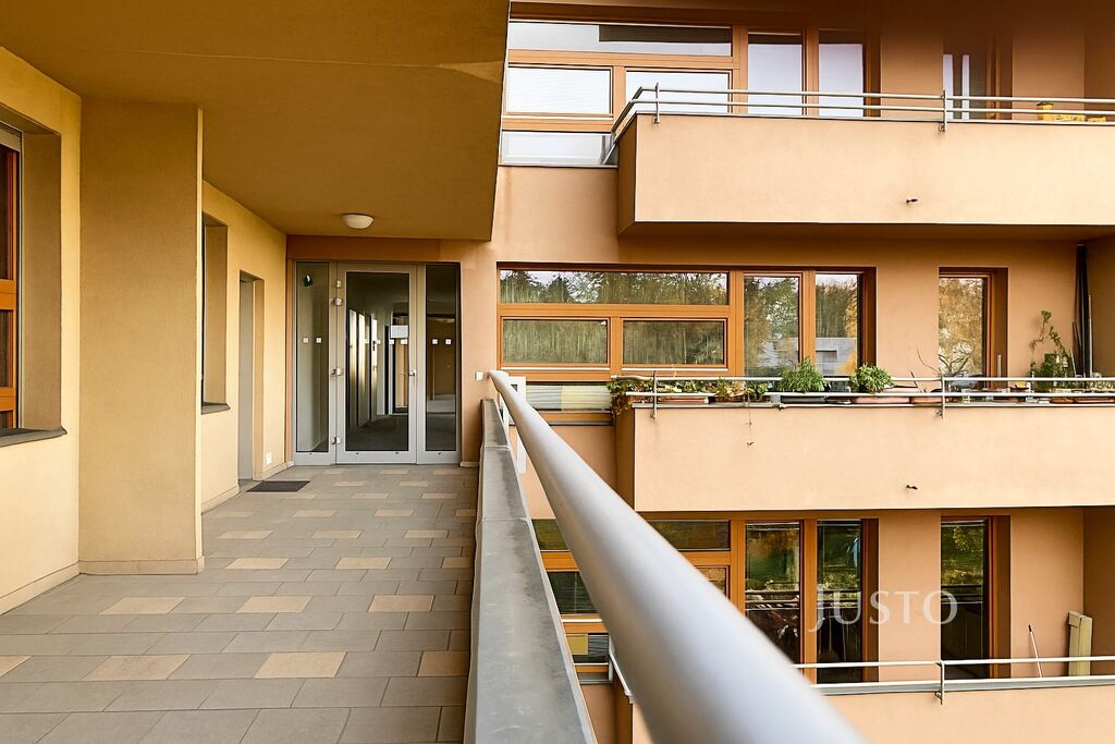 Nabízíme k pronájmu kompletně zařízený byt 2+kk (53 m² + balkon 6 m²) ve 3. patře moderní rezidence Barrandovský dvůr, s garážovým stáním.