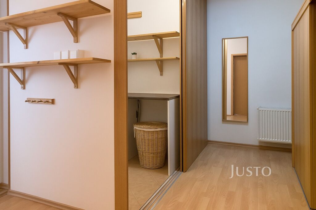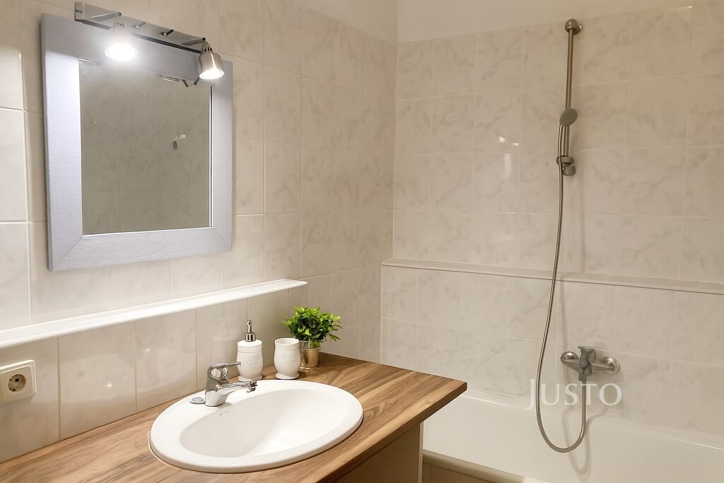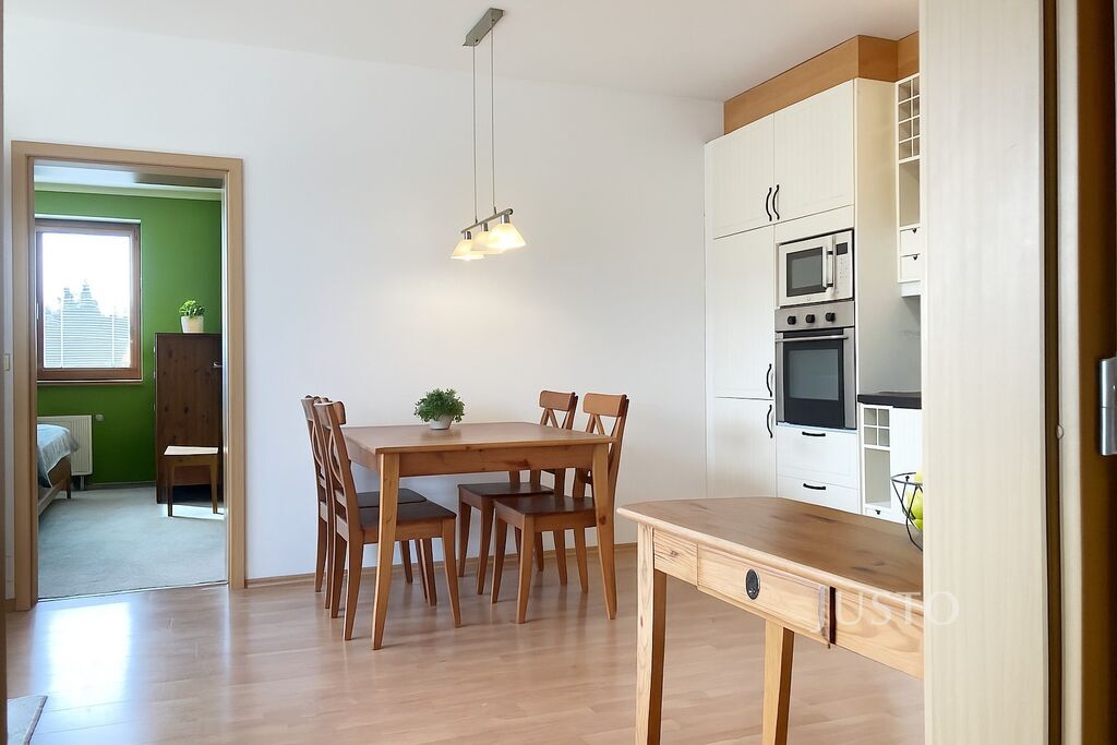 Byt je čerstvě vymalovaný a připravený k nastěhování.