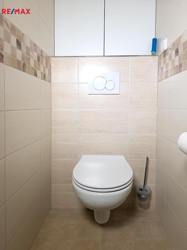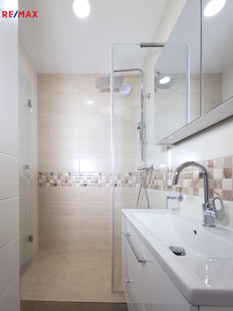 - koupelna se sprchovým koutem, pračkou + samostatné WC.