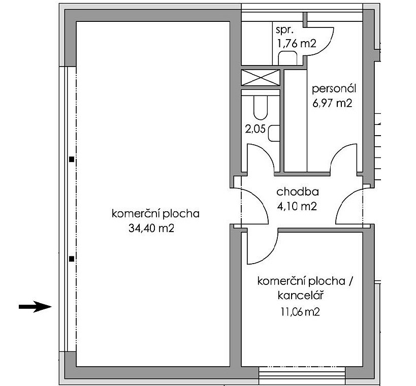 We offer for rent representative commercial space with a total usable area of 59.83 m², located in a modern and well-maintained building on Máchova Street in Mladá Boleslav. The premises are divided into a main office (34.4 m²), a second office (11 m²), and facilities including a kitchenette with a microwave, refrigerator, and an electric kettle, a bathroom with a shower, and a separate toilet.