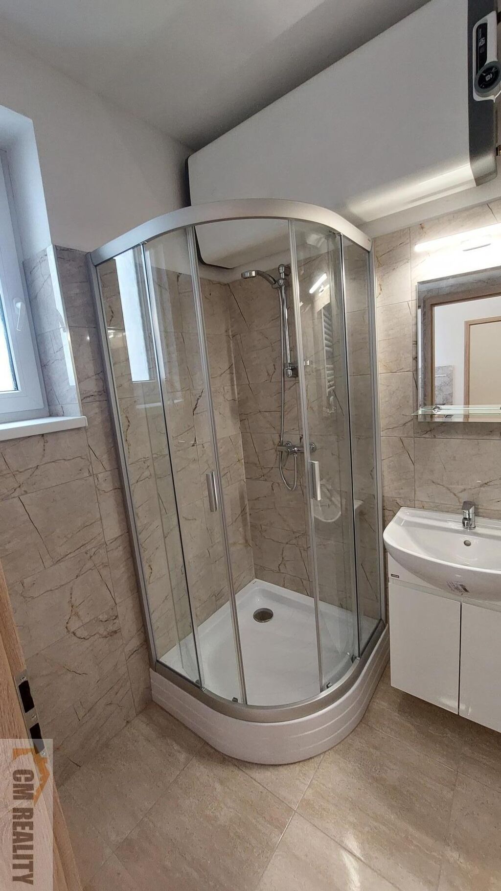 K vybavení bytu náleží moderní kuchyňská linka s vestavěnou troubou a varnou deskou. V Koupelně je sprchový kout. Topení je zajištěno vlastním elektrokotlem a ohřev vody pomocí elektrického ohřívače vody. V bytě jsou v pokojích plovoucí podlahy a dlažba v koupelně a na WC. Parkování je v okolí před domem. Výhled z bytu je jak do dvora tak i do ulice. V místě je veškerá občanská vybavenost. Nákupní centrum je vzdálené 150 metrů, školka je přímo přes ulici. Byt se pronajímá nezařízený.