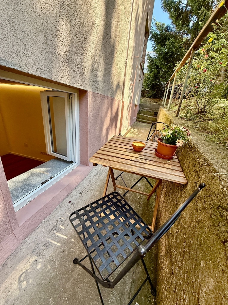Pronájem bytu od 1.1. 2026 - nový, útulný byt o dispozici 1kk, velikosti 16,3 m2, Praha 6 - Břevnov, ulice Nad Kajetánkou. Byt se nachází v přízemí cihlového domu, který je velmi klidný, slušný, obývaný převážně samotnými majiteli bytů. Orientace bytu je na slunný západ do klidného vnitrobloku s pěknou udržovanou zahradou se vzrostlými stromy, kterou je možné využívat. Na dvorek před okno bytu je možné si umístit i posezení, které je součástí vybavení, a využívat tak venkovní prostor k relaxu.