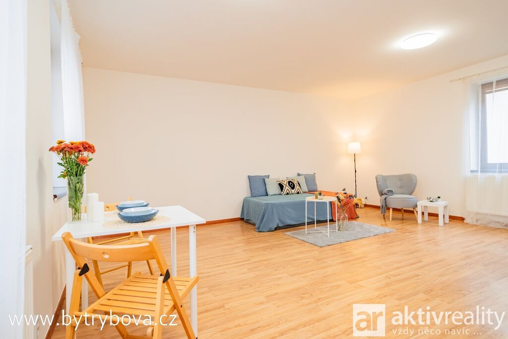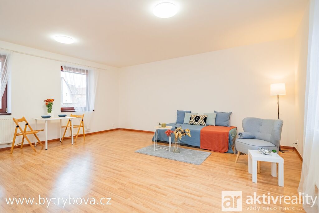- Obývací pokoj s kuchyňským koutem – prostorný, světlý, ideální pro rodinu
