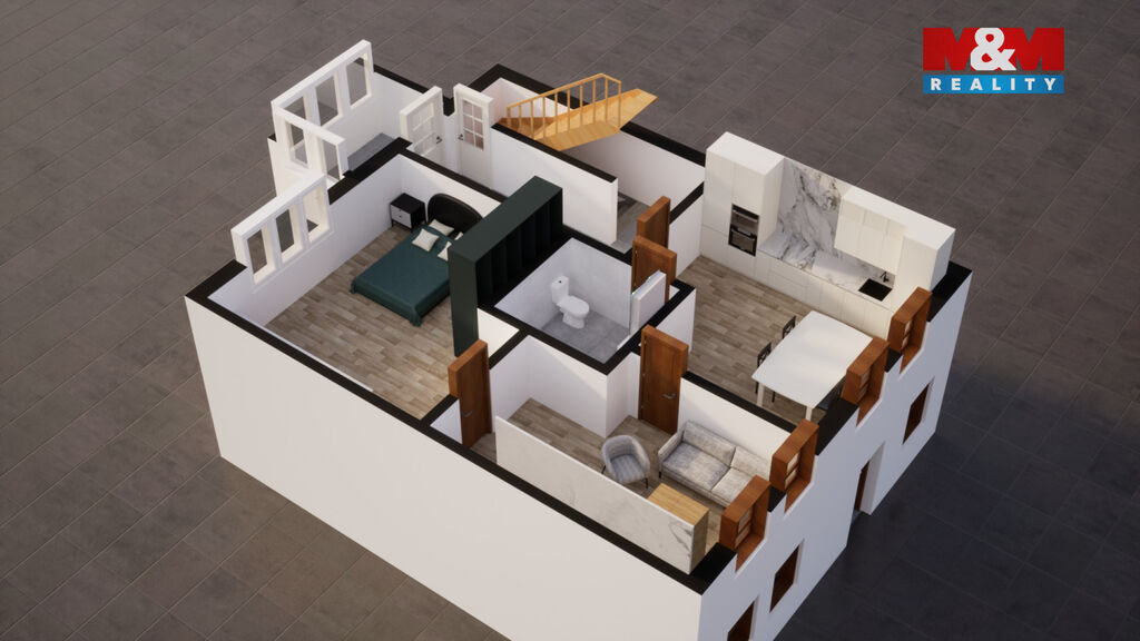 Součástí nabídky je i útulná zahrádka za domem s kůlnou na nářadí. Nechybí ani prostorný sklep s dostatkem úložného prostoru.