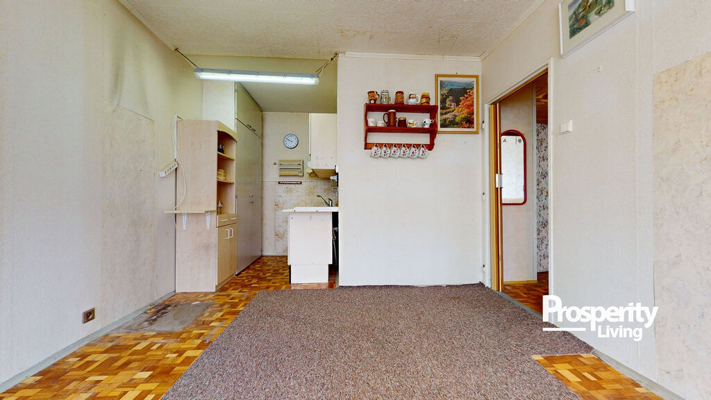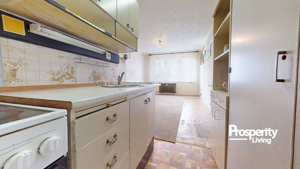Dispozice bytu se skládá ze vstupní chodby, obývacího pokoje s kuchyňským koutem, ložnice, koupelny s toaletou a spíže vedle bytu. Spíž je malým, ale velmi praktickým prostorem, ideálním pro uskladnění domácího či sportovního vybavení – takové místo, které může být opravdu užitečné v každodenním životě. Byt je v původním stavu, má umakartové jádro a plastová okna a je připravený na kompletní rekonstrukci, takže každý kout lze přetvořit podle vlastního stylu a potřeb. K bytu patří také sklepní kóje, která je ideální jako další úložný prostor. Informace k měsíčním nákladům lze získat na prohlídce.