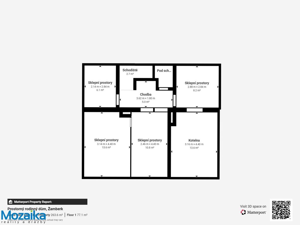 Dispozice domu je velmi praktická a promyšlená. V suterénu najdete celkem pět místností, které slouží jako kotelna, sklad paliv, kancelář a další užitné prostory. Přízemí tvoří vstupní předsíň, chodba, samostatné WC, velká koupelna s vanou , kuchyně a prostorný obývací pokoj s přímým východem na přistavěnou terasu, kde můžete trávit příjemné chvíle s rodinou. Dále je zde praktická garáž přímo u domu. V podkroví se nachází chodba, čtyři pokoje a další WC, což poskytuje dostatek soukromí pro všechny členy domácnosti.