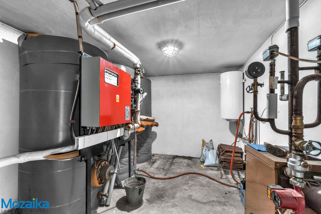 Dům je napojen na elektrickou energii, vodovod a kanalizaci. Vytápění je řešeno dvěma zdroji, což vám dává možnost volby podle aktuálních potřeb a cen energií. První variantou je elektrokotel s akumulačními nádržemi, druhou pak kotel na tuhá paliva. Oba zdroje jsou napojeny na teplovodní radiátory rozmístěné po celém domě. Okna v obytné části jsou plastová s dvojsklem, ve sklepě a garáži jsou dřevěná. Vchodové dveře jsou plastové. K domu přiléhá zahrada, která nabízí prostor pro odpočinek, zahradničení nebo hraní dětí. Terasa přístupná z obývacího pokoje je ideálním místem pro letní posezení s přáteli a rodinou.