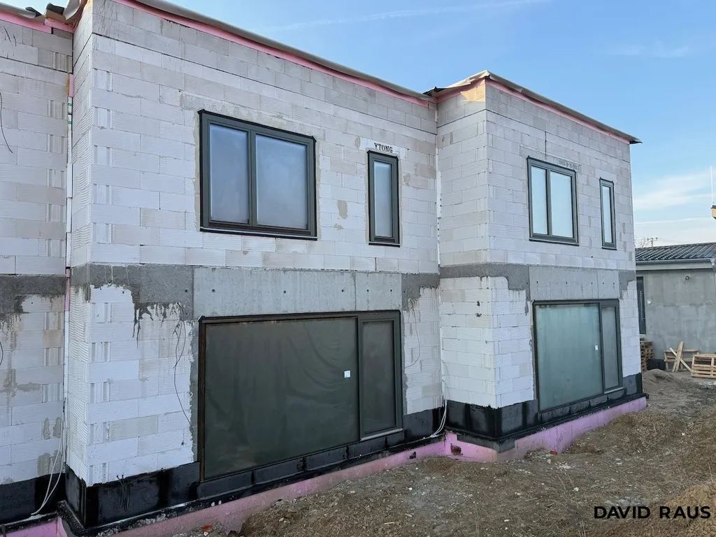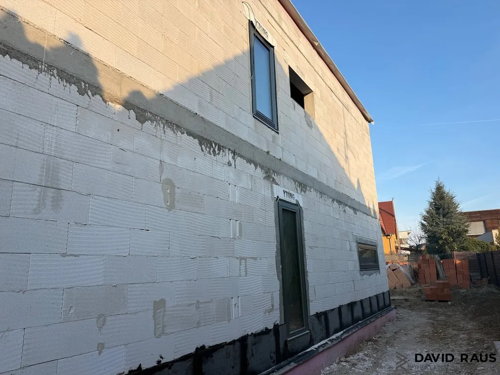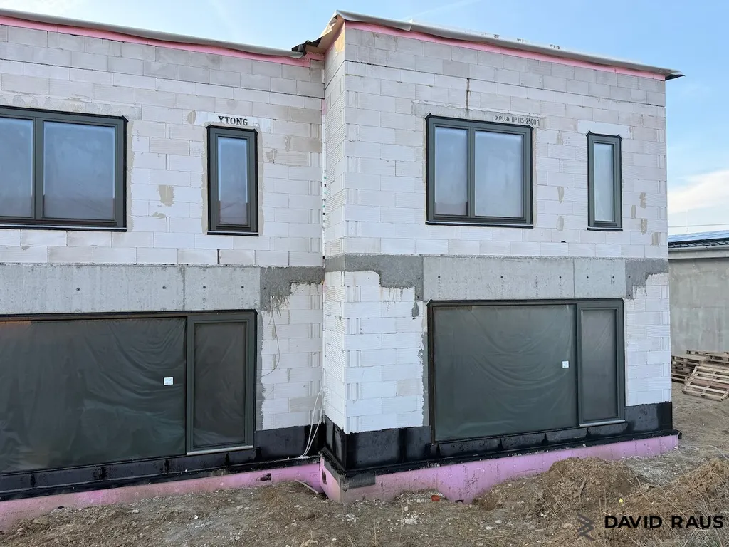 Rodinný dům o podlahové ploše 175 m² je ve fázi výstavby a je jeden ze čtyř nízkoenergetických rodinných domů na ulici Syrovická v Rajhradě.