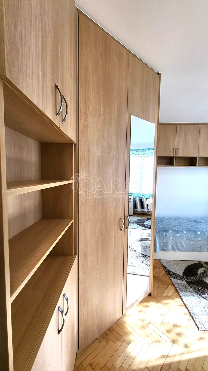 Byt je vybaven lednicí, dvou plotýnkou, troubou, myčkou, pračkou a klimatizací, což zajišťuje komfortní bydlení po celý rok. Do oken jsou objednány nové žaluzie a orientace na západ přináší do bytu příjemné denní světlo. K dispozici je rovněž stůl se dvěma židlemi, postel, pracovní stolek, vestavěné skříně a policový regál, což vytváří útulný a praktický prostor pro každodenní život.