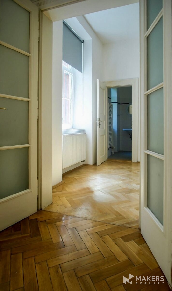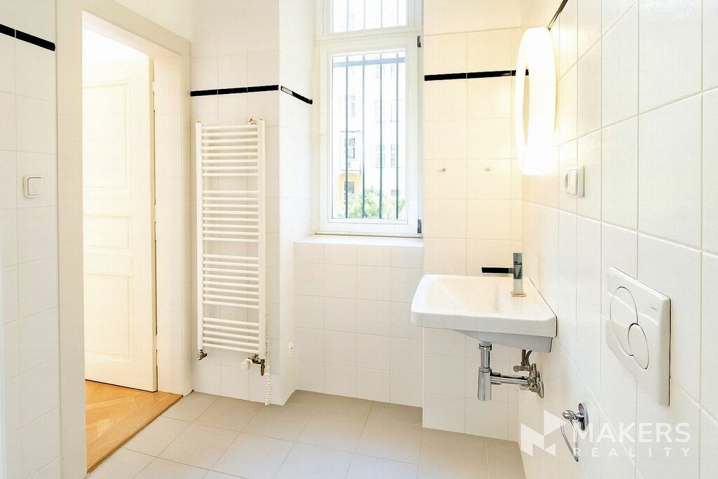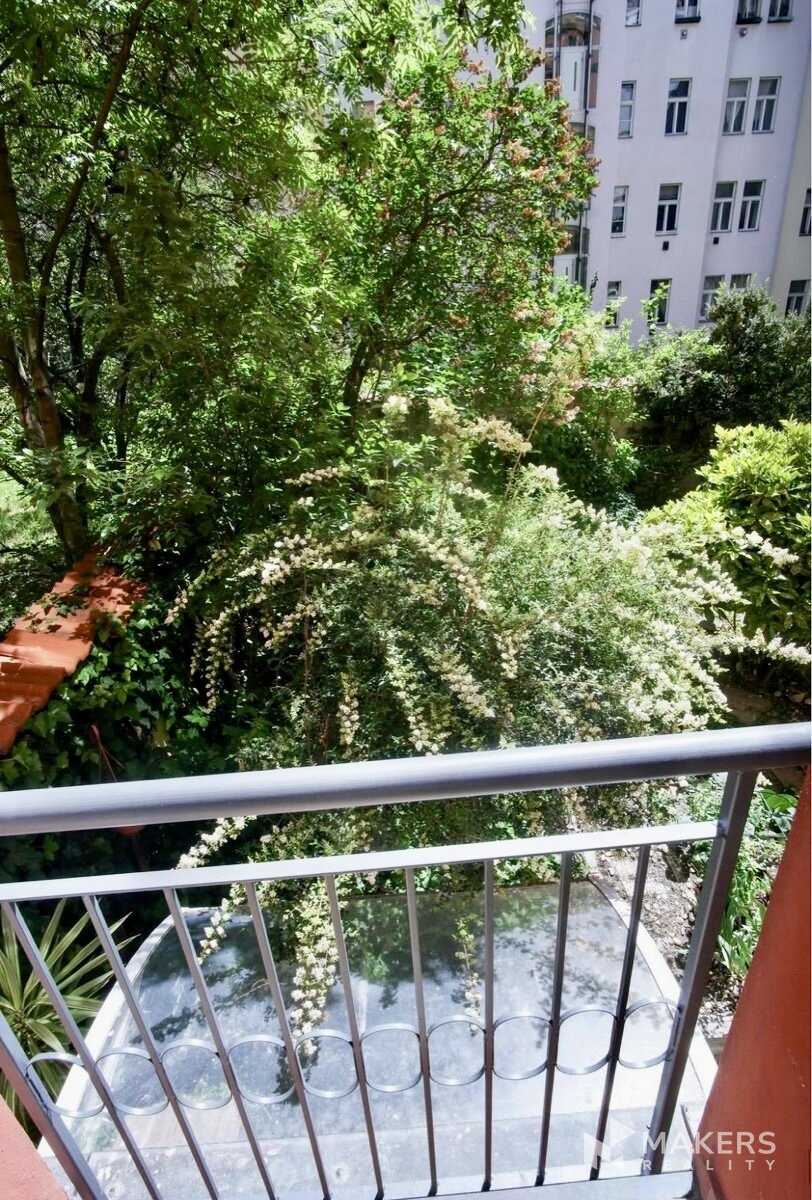 Byt je orientován do klidného vnitrobloku, což zajišťuje příjemné a tiché bydlení v atraktivní části Vinohrad. Francouzské okno z obývacího pokoje zajišťuje dostatek denního světla a výhled do zeleně.