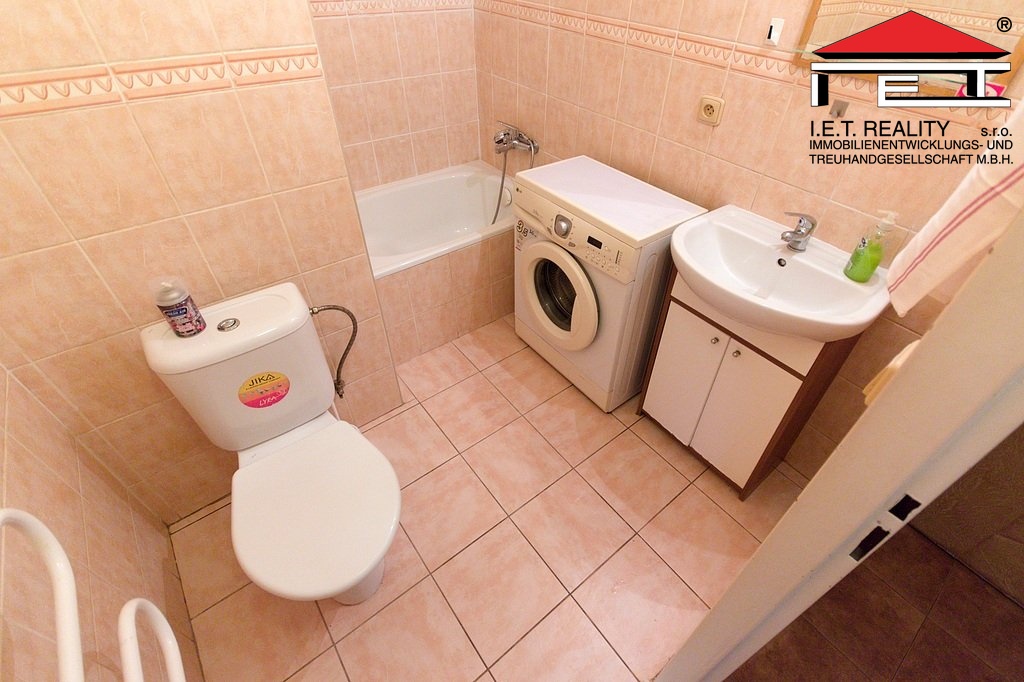 V předsíni najdete botník a věšáky. Koupelna je vybavená záchodem, umyvadlem se zrcadlem, pračkou a menší vanou. Ručníky a osušky vám usuší topný žebřík. K bytu náleží sklepní kóje v přízemí o velikosti cca 1,5 m2. Byt je vhodný pro 2-3 osoby.