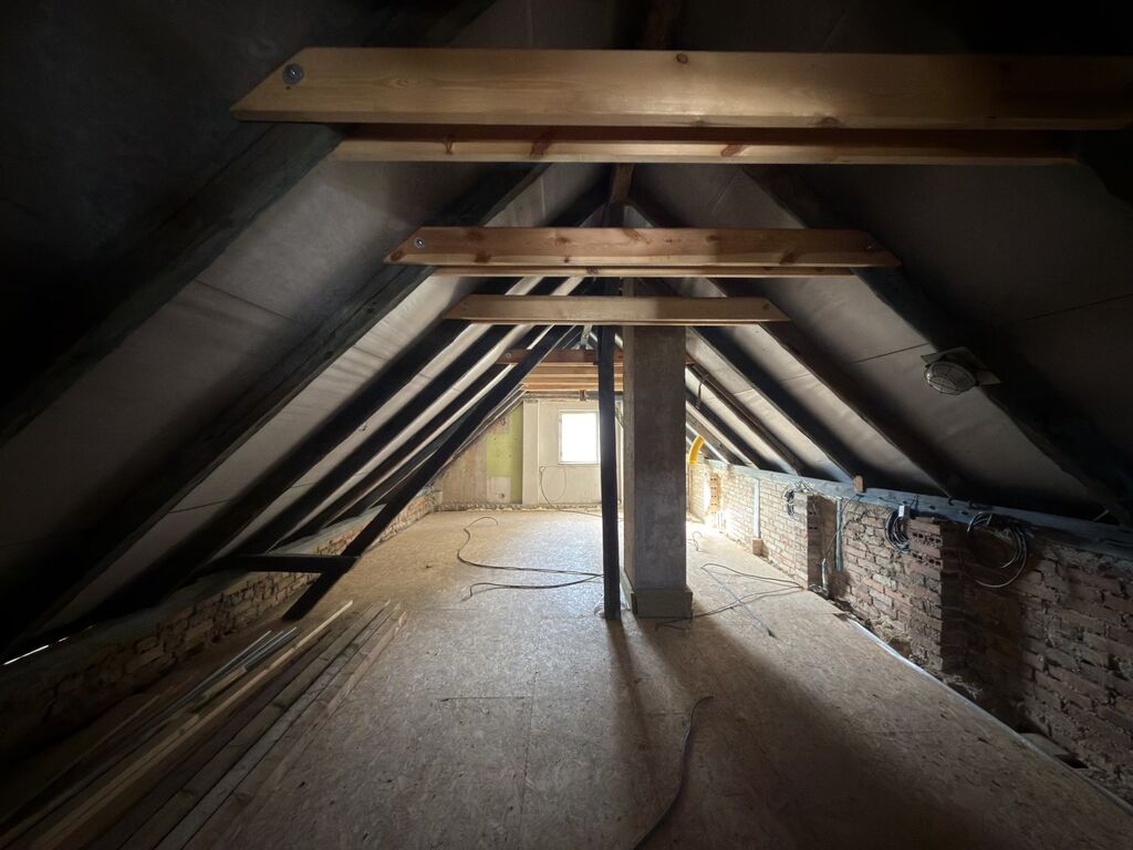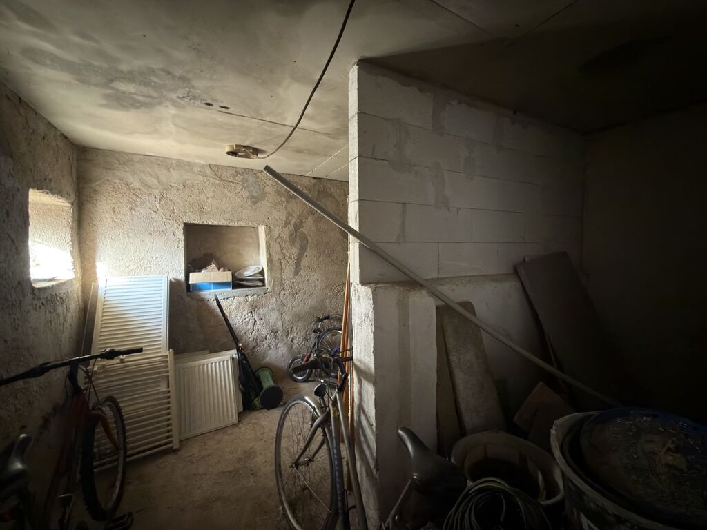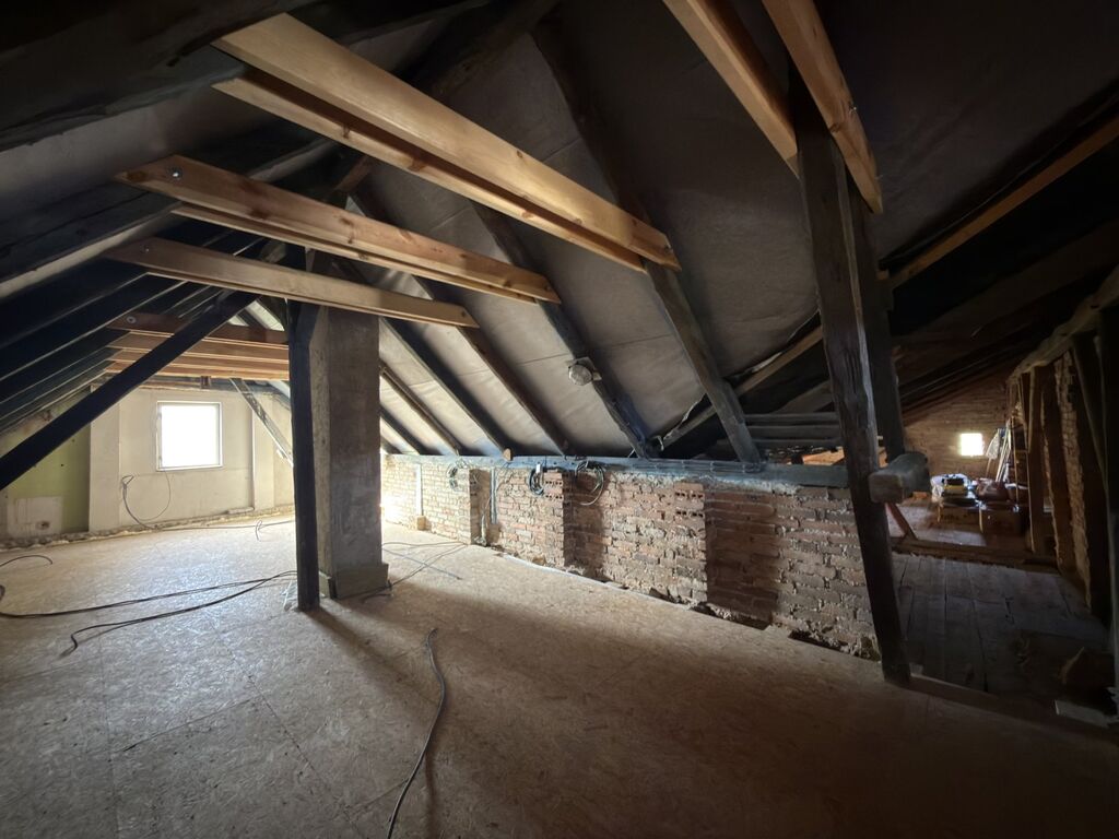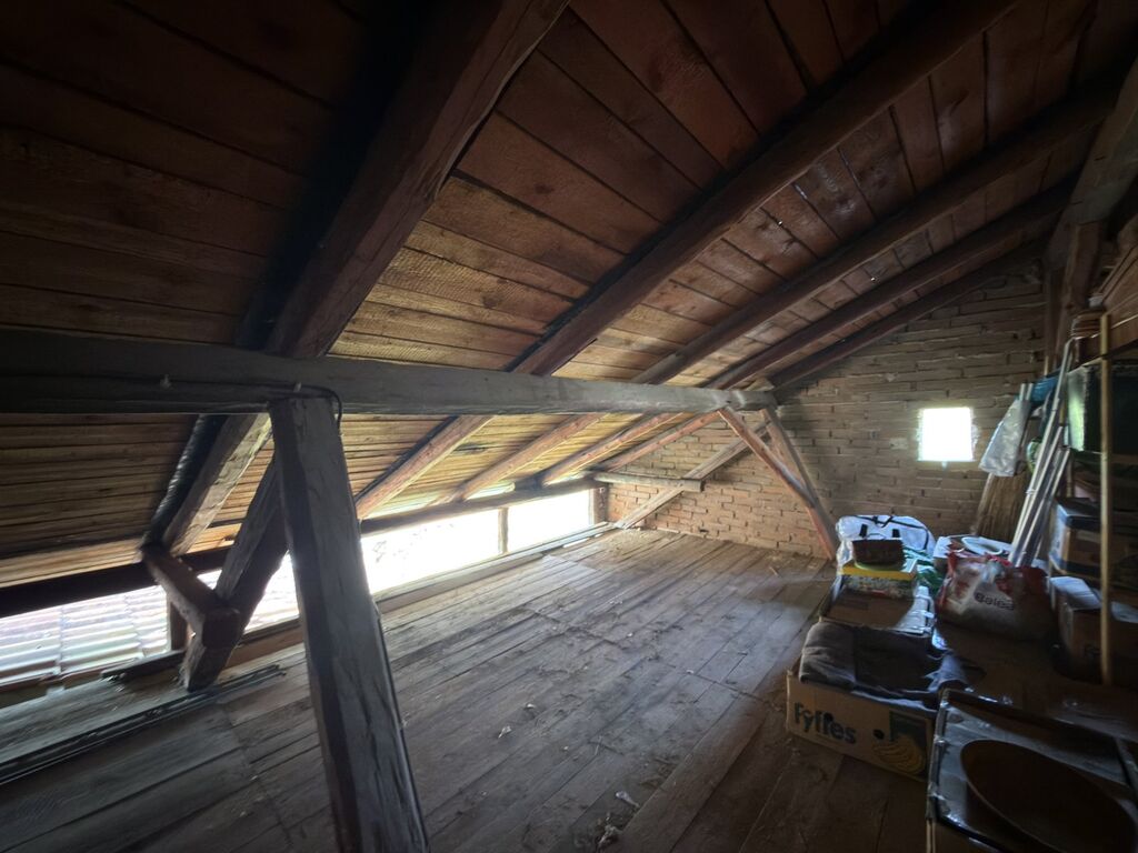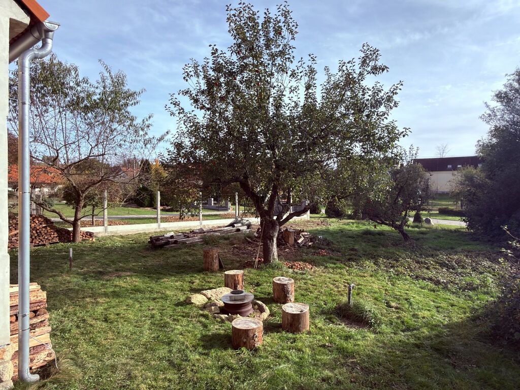 Dům je přímo u návsi s rybníkem, nabízí dispozici 2+kk (50m2) jako útulné plně funkční zázemí s plánovaným rozšířením o podkroví, dále zahrnuje garáž, částečně podsklepený prostor a stodolu. Do podkroví jsou vyvedené husími krky přípojky pro budoucí zapojení elektřiny, vody a odpadů. Jedná se o smíšenou stavbu (kámen - cihla) s orientací na jih a západ, ideální pro maximální využití světla a případného fotovoltaického systému na ohřev vody nebo napájení spotřebičů. (Je možno využít dotačního programu k zateplení domu i střechy.)