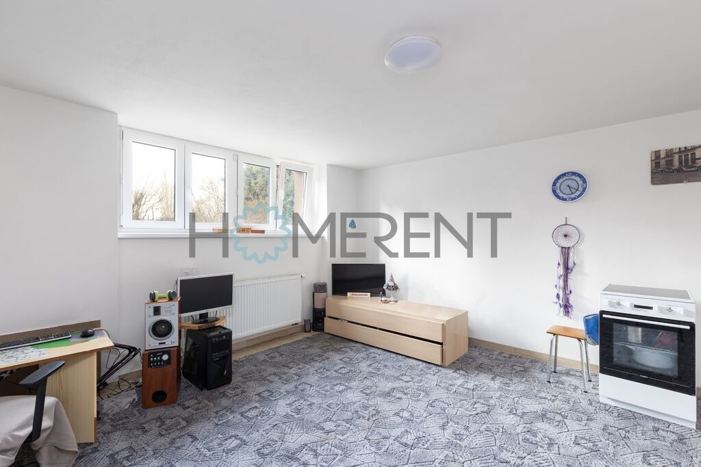 Byt se pronajímá nezařízený s kuchyní bez spotřebičů. Bytová jednotka se nachází v suterénu domu s výhledem do zahrady. Parkování je možné hned u domu, kde jsou parkovací zóny.