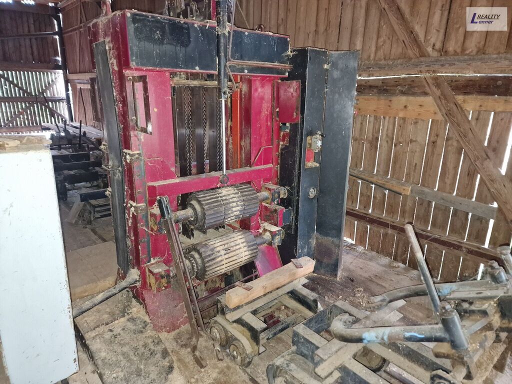Dále pak dřevěná, prostorná hala – s funkční velkoformátovou pilou s užitnou plochou 182 m2.