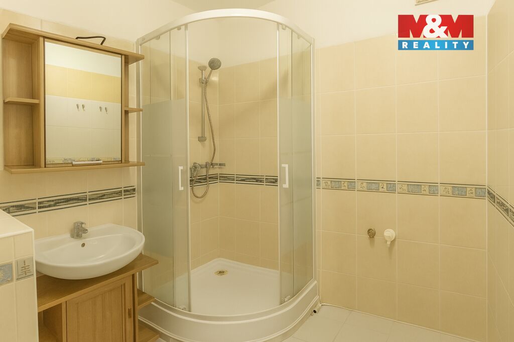 Koupelna je spojena s toaletou a vybavena sprchovým koutem, umyvadlem a přípojkou na pračku. K bytu náleží sklep, dále je k dispozici společná sušárna, kolárna a praktická komora na patře. Dům je udržovaný a nachází se v blízkosti škol, školek, obchodů i vlakového a autobusového spojení.