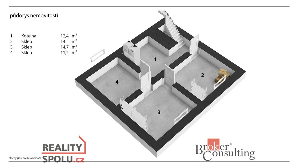 Nemovitost je podsklepená a dispozičně rozdělena následujícím způsobem: