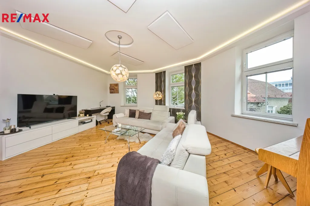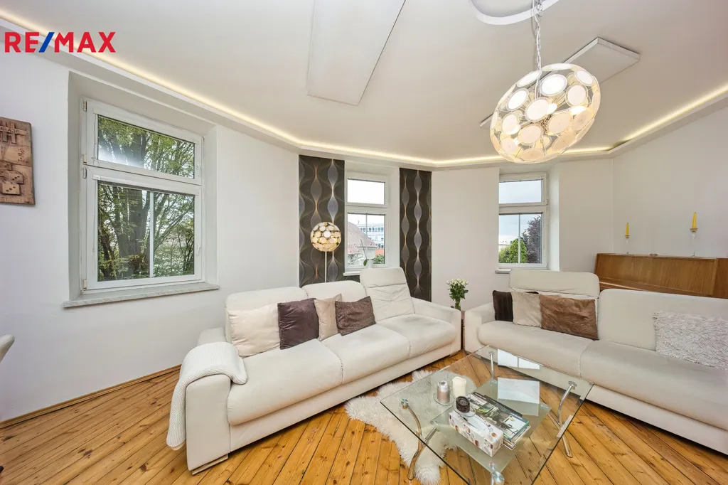 Nabízíme k prodeji mezonetový byt 5+1 s krytým parkovacím stáním, zahradou ve společném užívání (s vyhrazeným soukromým prostorem), terasou a sklepem v osobním vlastnictví o celkové evidované podlahové ploše 189 m². Byt se nachází ve 2. a 3. nadzemním podlaží (z celkem 3 NP) cihlového domu z roku 1919 bez výtahu.