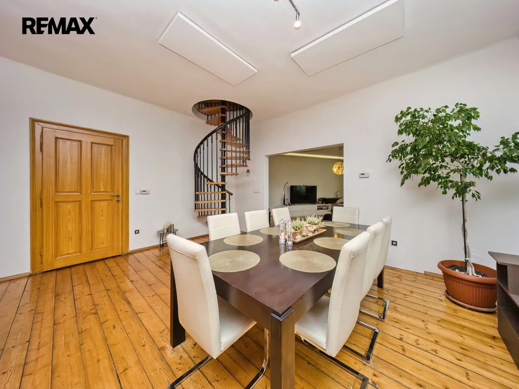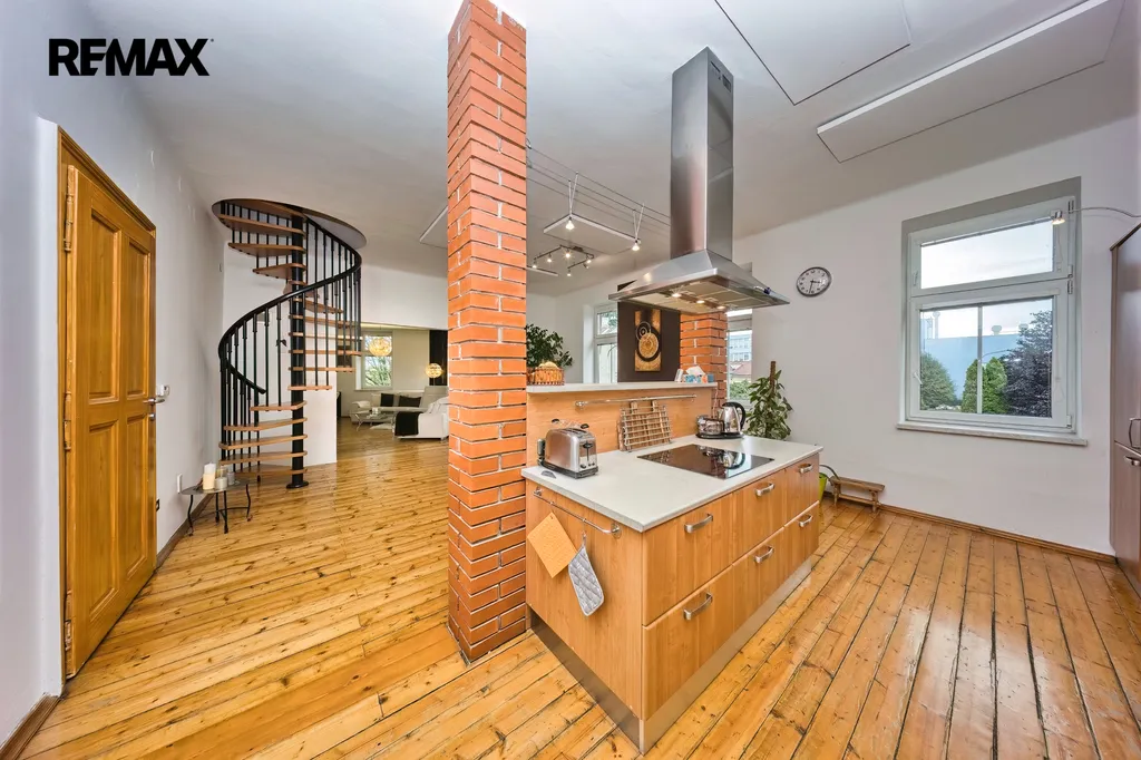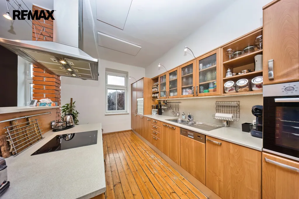 Nabízíme k prodeji mezonetový byt 5+1 s krytým parkovacím stáním, zahradou ve společném užívání, možnou terasou a sklepem v osobním vlastnictví o celkové evidované podlahové ploše 189 m². Byt se nachází ve 2. a 3. nadzemním podlaží (z celkem 3 NP) cihlového domu z roku 1919 bez výtahu.