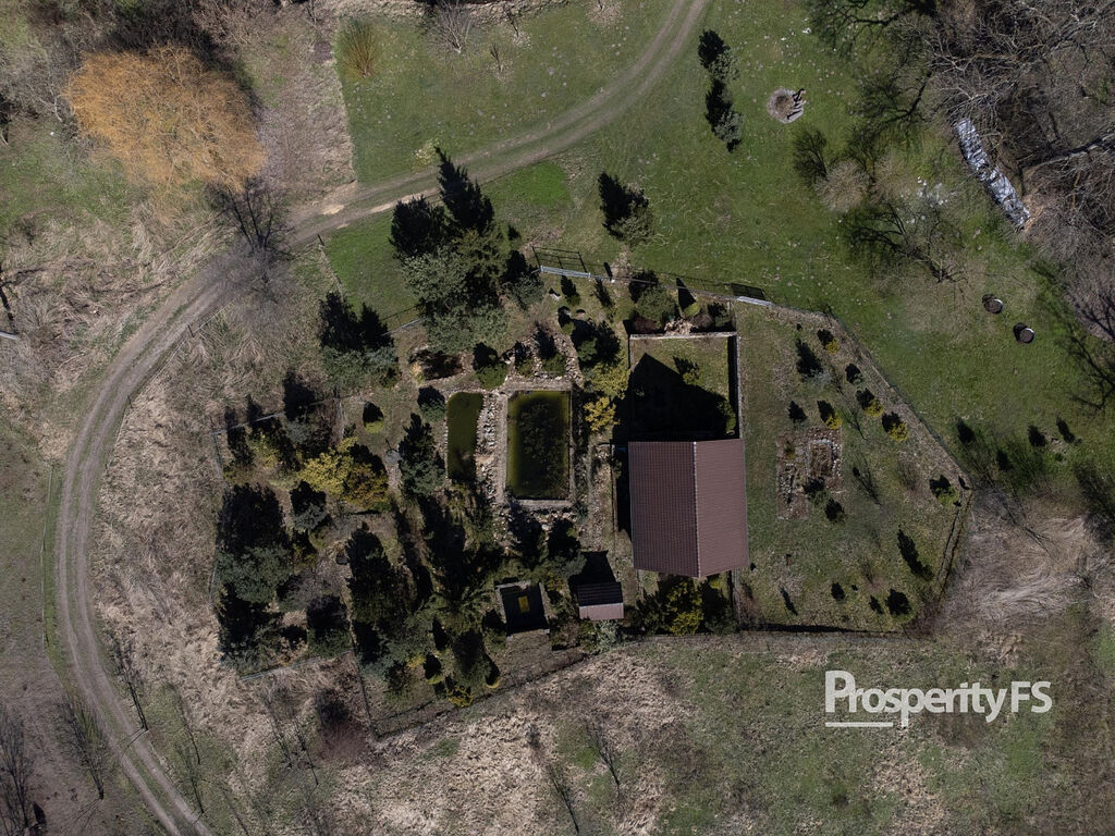 Na pozemku se nachází také zahradní domek postavený ve stylu roubenky, který kromě možnosti vybudování suchého WC nabízí i prostor pro uložení zahradního nářadí. Celý pozemek je oplocený, se dvěma vjezdovými bránami, a nabízí naprosté soukromí – v okolí nejsou žádní přímí sousedé.