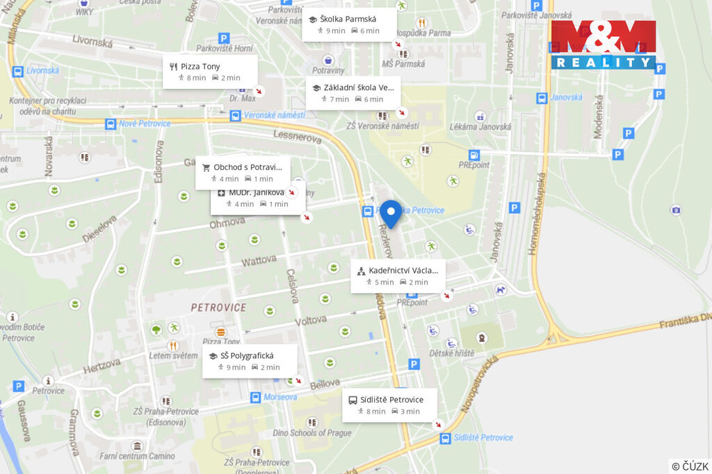 ? Lokalita nabízí kompletní občanskou vybavenost – v docházkové vzdálenosti jsou školy, školky, parky, obchody i zastávky MHD. Skvělá dostupnost na metro Háje i do centra města.