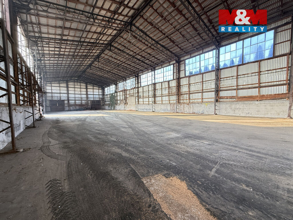 Pevná konstrukce, vysoké stropy, velká vjezdová vrata pro nákladní dopravu.