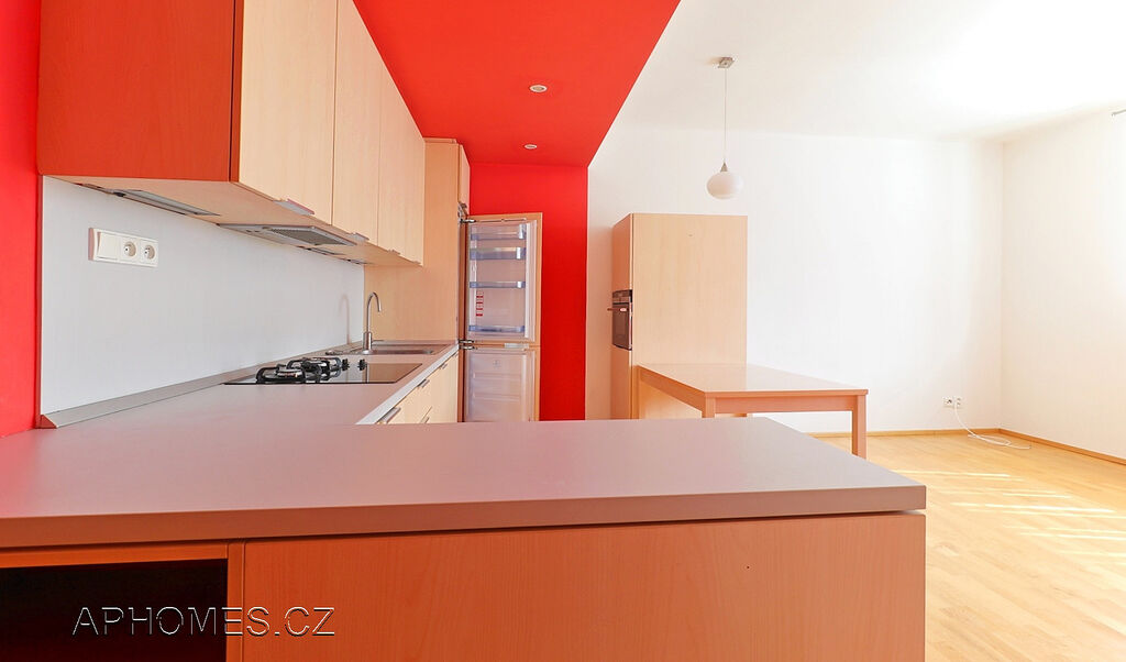 Součástí vybavení je kuchyňská linka s vestavěnou troubou, sklokeramickou varnou deskou, digestoří a lednicí.