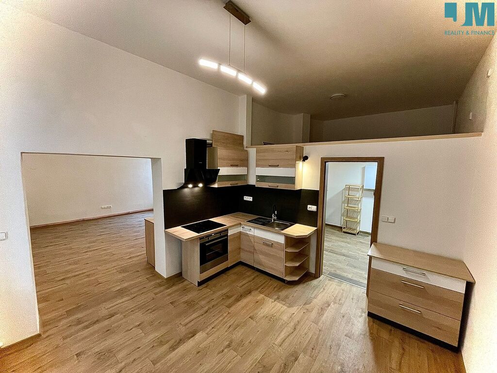 Byt je vybaven novou kuchyňskou linkou s moderními spotřebiči a prostornou koupelnou s velkým sprchovým koutem. Zajímavým prvkem je také prakticky využitý prostor nad koupelnou, který lze využít například jako útulné místo na spaní – pohodlně se sem vejde větší matrace, nechybí ani zásuvky a osvětlení.