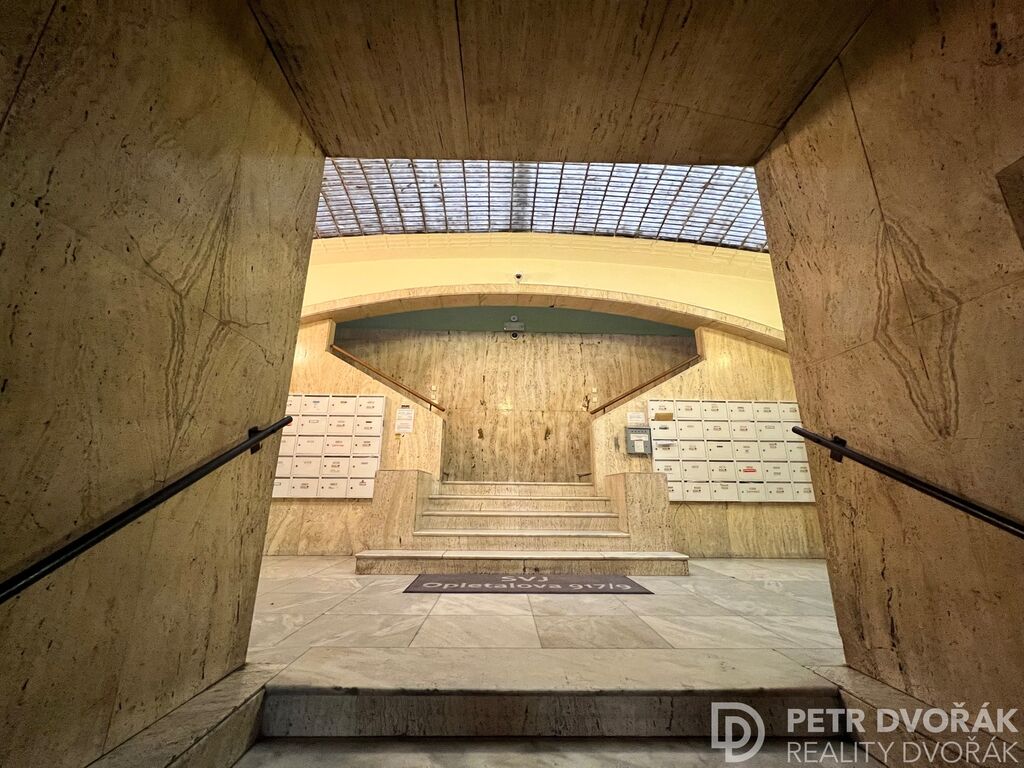 Nabídka moderního, nově zrekonstruovaného bytu 1+kk s klimatizací a terasou orientovanou do klidného vnitrobloku. Jednotka o ploše 27 m² se nachází ve funkcionalistickém činžovním domě v Opletalově ulici, který v letech 1936–1939 navrhl architekt Ferdinand Fencl. Budova disponuje dvěma výtahy a reprezentativními společnými prostory.