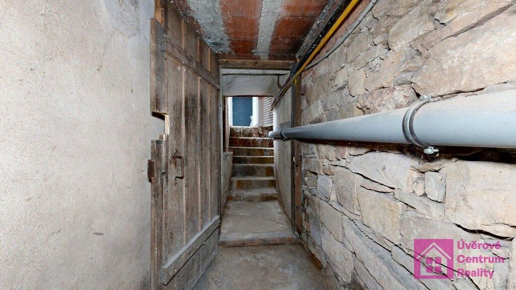suterén: chodba se schodištěm a tři skladovací prostory,